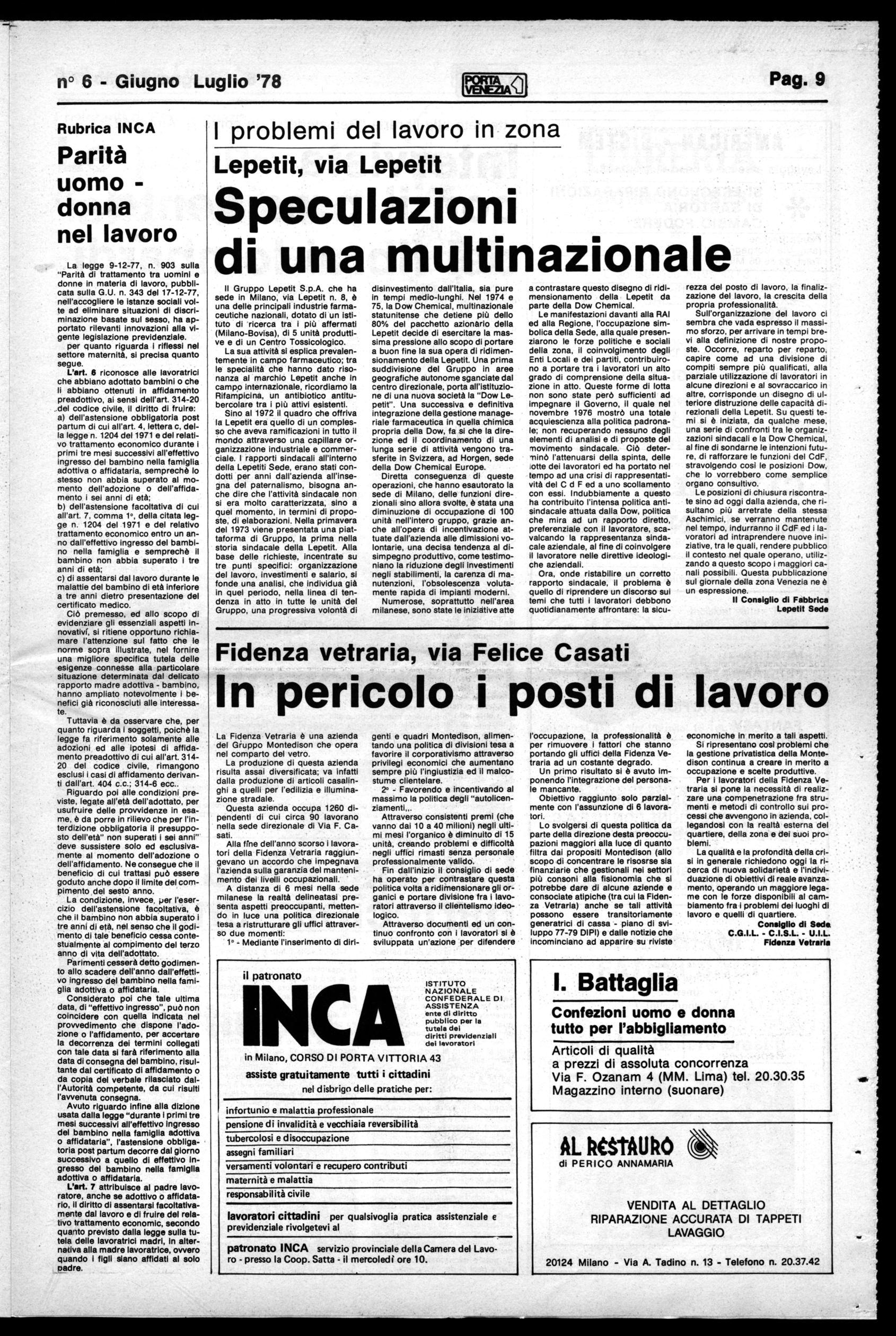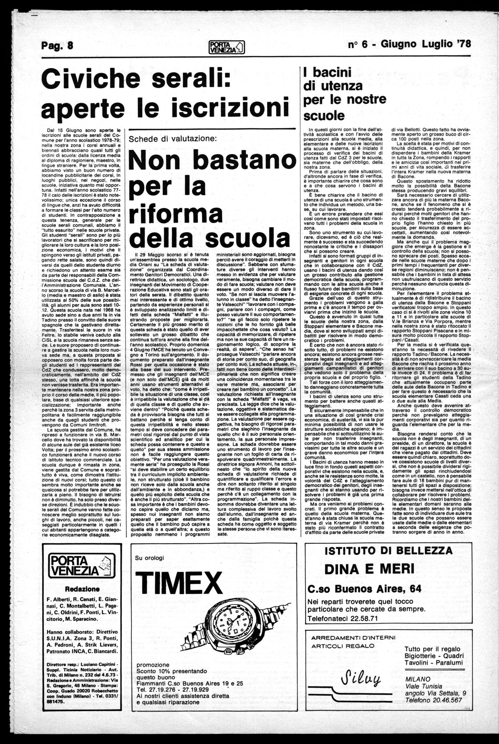 È su questo problema che Porta Venezia intende impegnarsi a fondo ricercando le forme più idonee per confrontarsi con le forze politiche e sociali, le istituzioni democratiche e i cittadini. Di una cosa siamo sicuri: lo sviluppo, l'arricchimento di partecipazione alla vita del giornale, è un contributo concreto alla battaglia per una informazione decentrata seria e tempestiva, per il rafforzamento del tessuto democratico, per la riappropriazione di un modo di vivere e lavorare che superi l'alienazione e l'egoismo impostoci dallo sviluppo caotico e ingiusto della città voluto dalle classe dominanti.