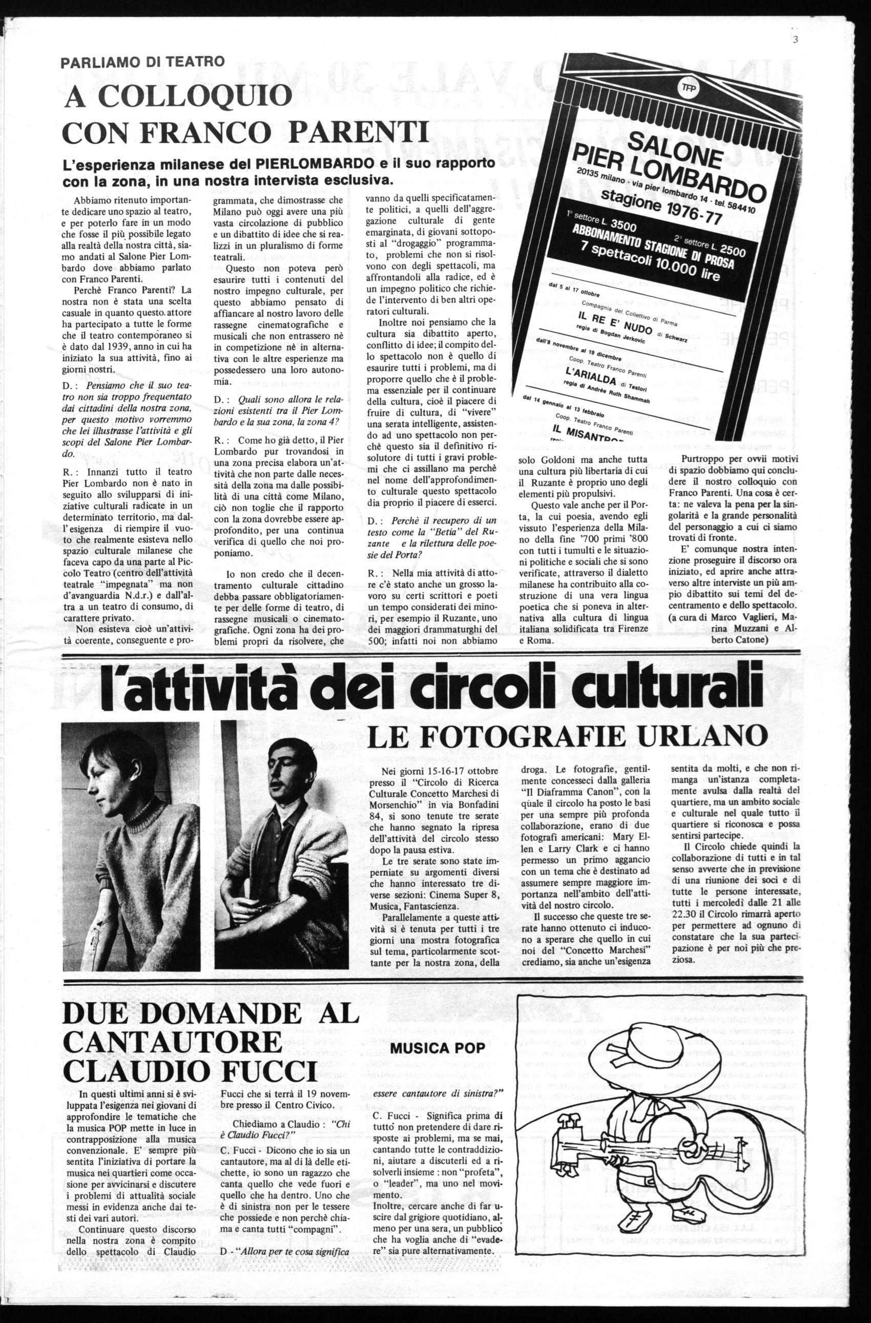 E' comunque nostra intenzione proseguire il discorso ora iniziato, ed aprire anche attraverso altre interviste un più ampio dibattito sui temi del decentramento e dello spettacolo. (a cura di Marco Vaglieri, Marina Muzzani e Alberto Catone)
