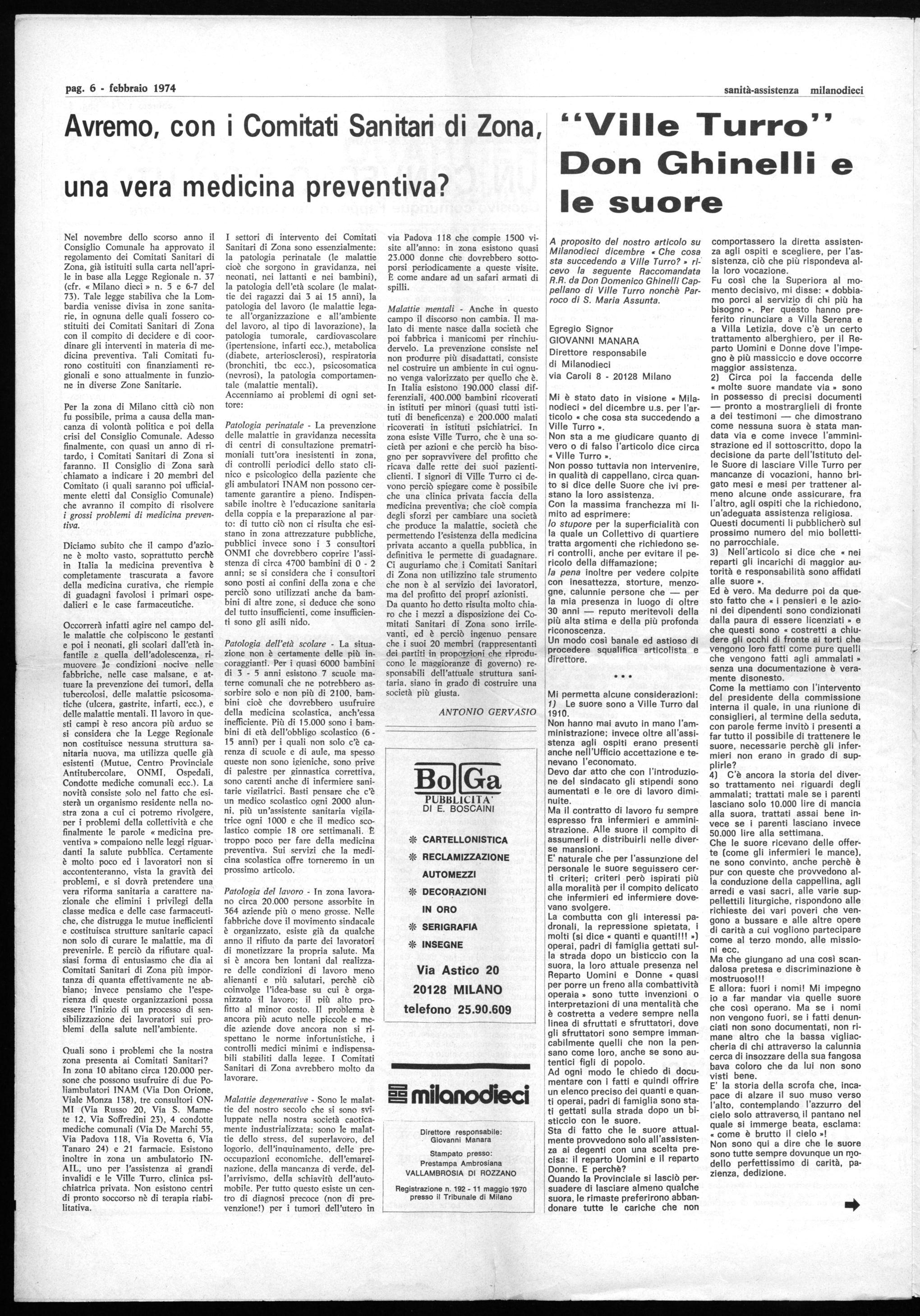 3 - Non suore mandate via, ma nel momento di una riduzione del loro numero, scelta di quelle da inviare ad altro incarico con criterio che è apparso a tutti quello di allontanare le più repressive: e ci va pure bene, non cambia nulla. Non mi sorprende purtroppo che Don Ghinelli non abbia speso una parola sulla sostanza dell'articolo che parla di come NON si deve usare il denaro pubblico per gli interessi dei lavoratori; e qui purtroppo si entra in un problema molto grosso e spinoso, forse troppo per le nostre forze, di come cioè la Chiesa gestisce il proprio potere nella lotta tra il ricco e il povero. Nella nostra Redazione c'è un prete che ha dovuto lasciare il suo ministero ed è stato buttato su una strada senza possibilità di un'occupazione stabile per le sue convinzioni ecclesiali e politiche. Nello studio di un amico avvocato ho visto una lista di 16 imputazioni sulla testa di un prete del Meridione che ha osato schierarsi dalla parte dei lavoratori in uno sciopero; naturalmente per difendersi ha solo la solidarietà degli sfruttati e non la protezione dall'alto. E lo stesso Don Ghinelli adesso per un attacco marginale all'operato delle suore ha sentito il bisogno di scrivere al nostro giornale una lunga lettera senza misurare le parole, ma prima, lui che è stato per 30 anni Capellano a Ville Turro dove lavorano oltre alle suore anche gli infermieri, li avrà visti lavorare per 14 ore al giorno a 52.000 lire al mese, e cosa ha fatto per difenderli? ha sfidato l'Amministrazione ad un confronto?