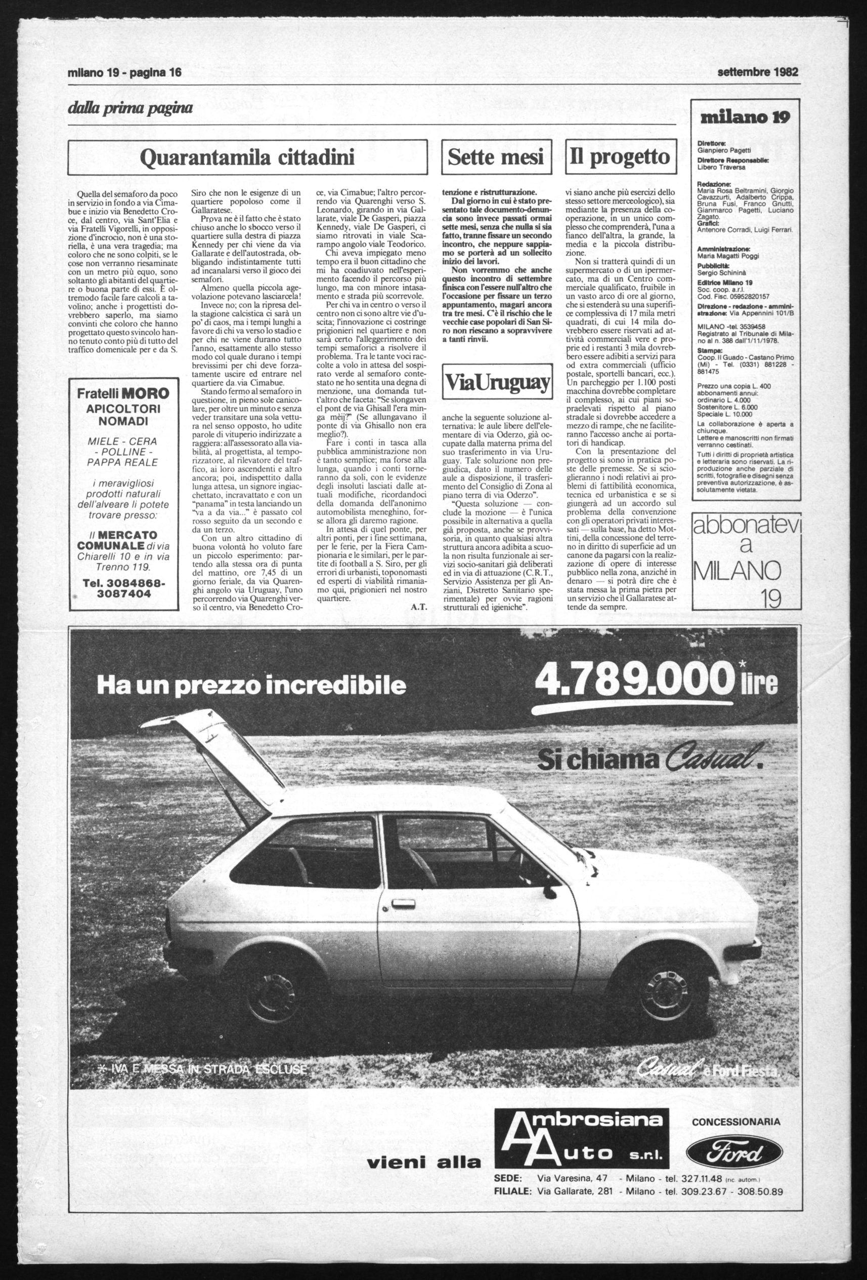 Direzione - redazione - amministrazione: Via Appennini 101/B MILANO -tel. 3539458 Registrato al Tribunale di Milano al n 388 dall'1/11/1978.