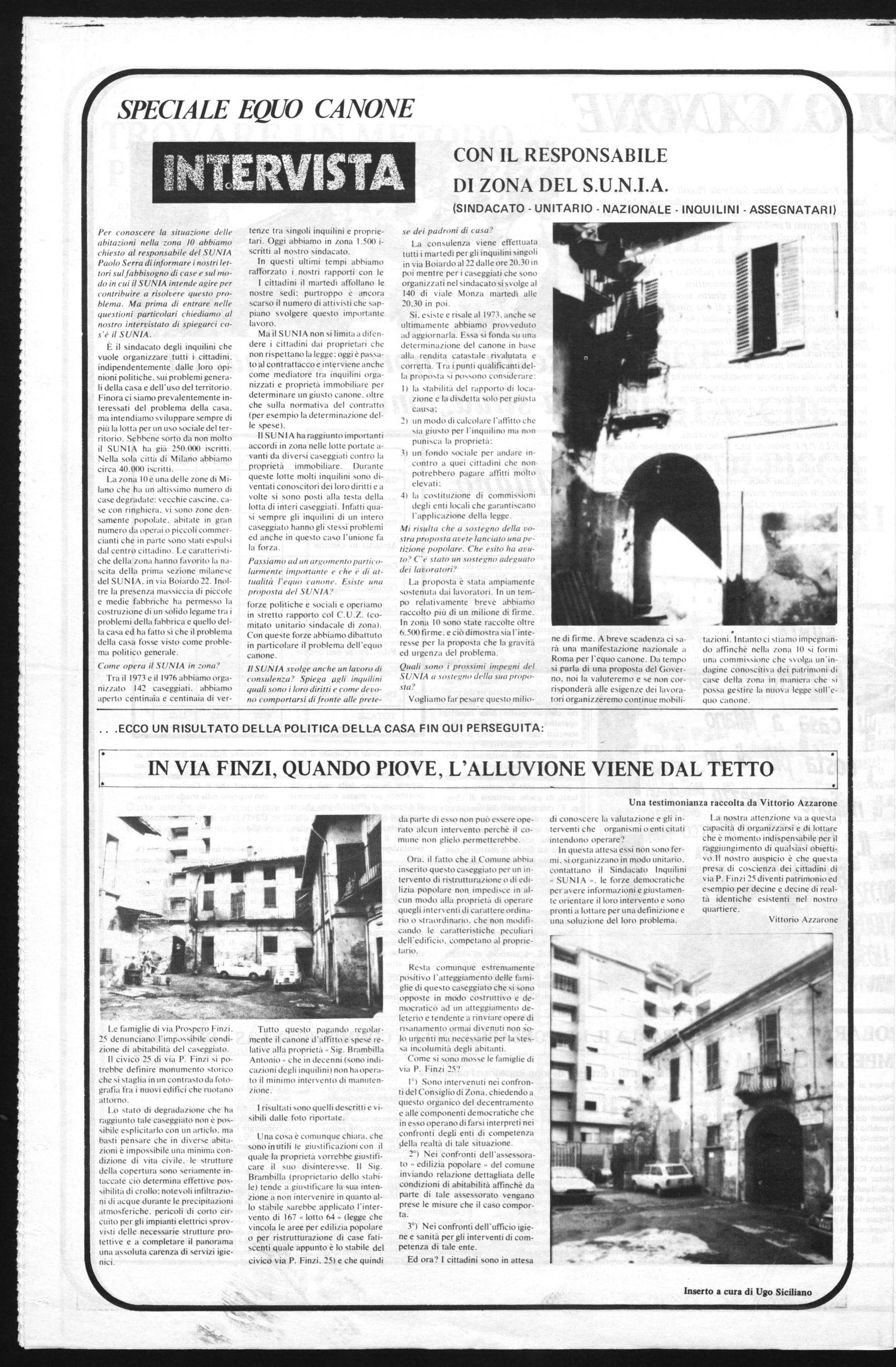 GIUSTA - L'ISTITUTO CASE POPOLARI NON MANTIENE GLI IMPEGNI - RESTA SEMPRE DRAMMATICA LA SITUAZIONE A MILANOPARLA IL RESPONSABILE DELLA COMMISSIONE CASA DEL C.d.Z. - CON IL RESPONSABILE DEL S.U.N.I.A. - IN VIA FINZI, QUANDO PIOVE, L'ALLUVIONE VIENE DAL TETTO.