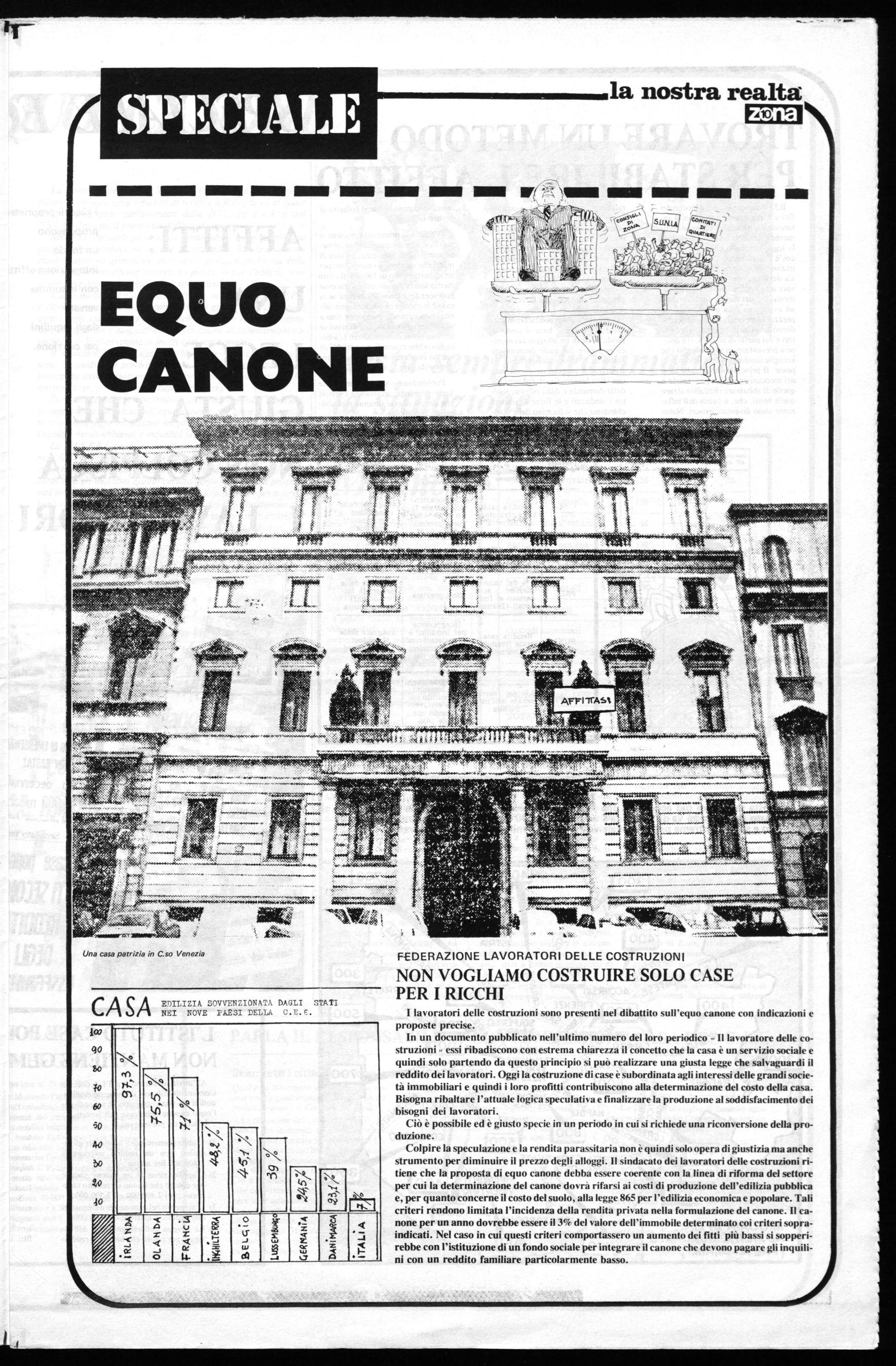 Però, per affrontare una battaglia politica di questa portata. è indispensabile sapere come stanno le cose. Per questo » La nostra realtà » ha deciso di dedicare il suo inserto centrale al problema dell'affitto giusto. O dell'EQUO CANONE come viene chiamato.
