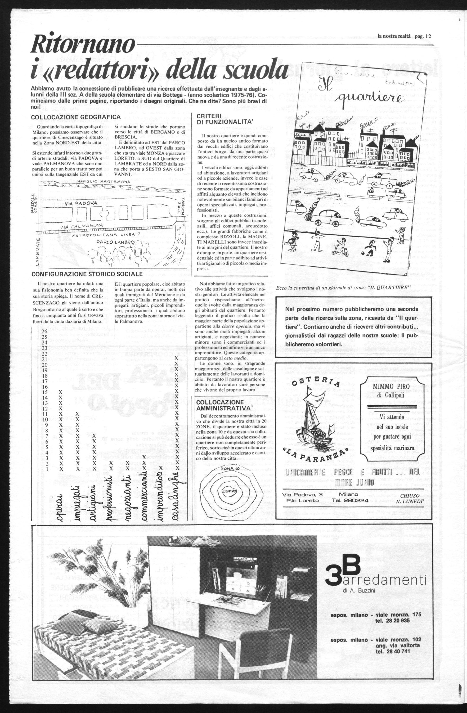 Nel prossimo numero pubblicheremo una seconda parte della ricerca sulla zona, ricavata da "Il quartiere". Contiamo anche di ricevere altri contributi... giornalistici dai ragazzi delle nostre scuole: li pubblicheremo volontieri.