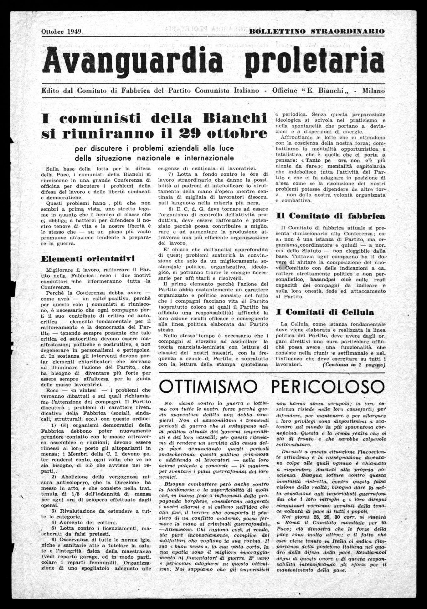 Dobbiamo farci una critica per lo scarso lavoro svolto in direzione degli impiegati, la situazione economica dei quali merita l'attenzione dei Comunisti della Bianchi.