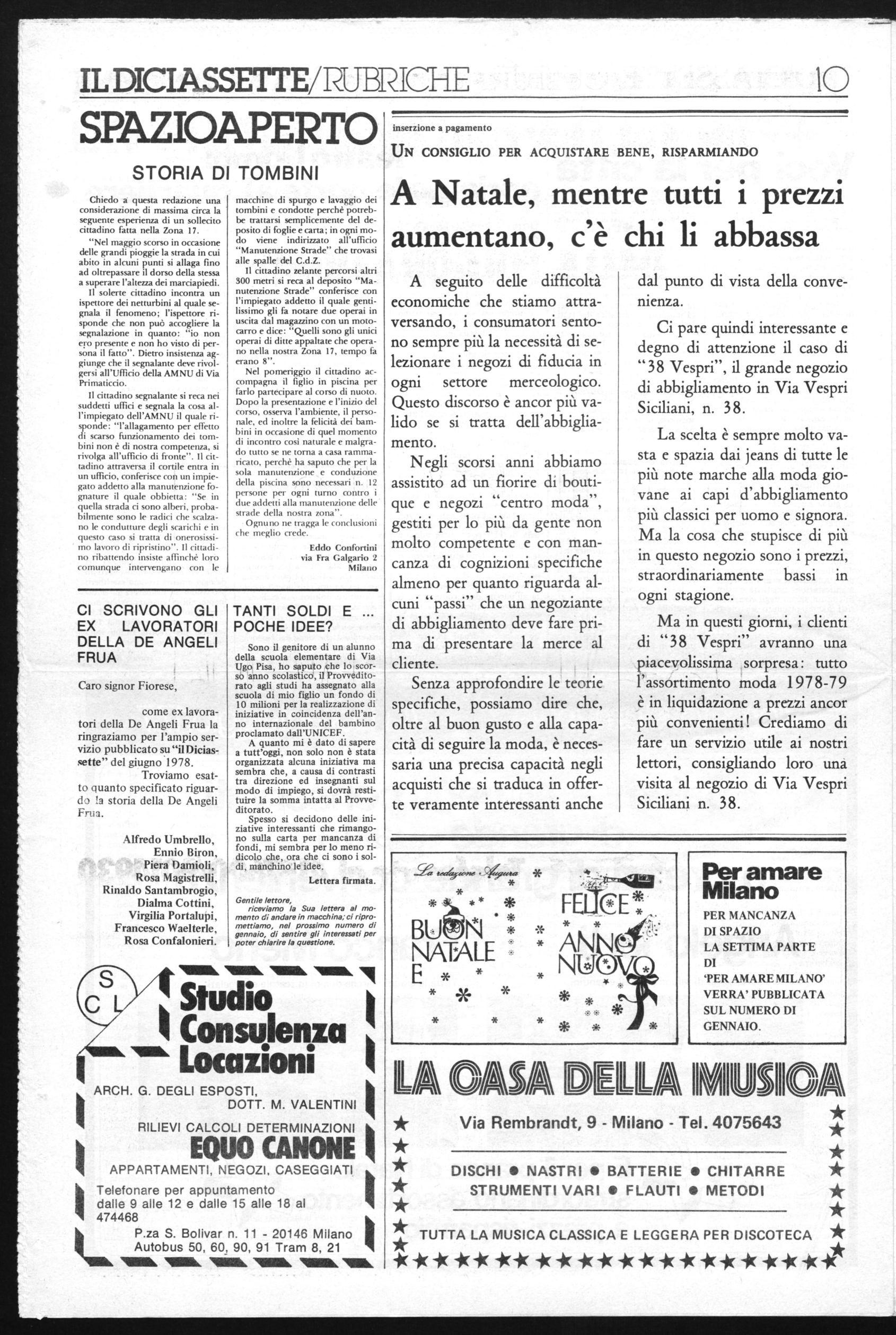 Ma in questi giorni, i clienti di "38 Vespri" avranno una piacevolissima sorpresa: tutto l'assortimento moda 1978-79 è in liquidazione a prezzi ancor più convenienti! Crediamo di fare un servizio utile ai nostri lettori, consigliando loro una visita al negozio di Via Vespri Siciliani n. 38.