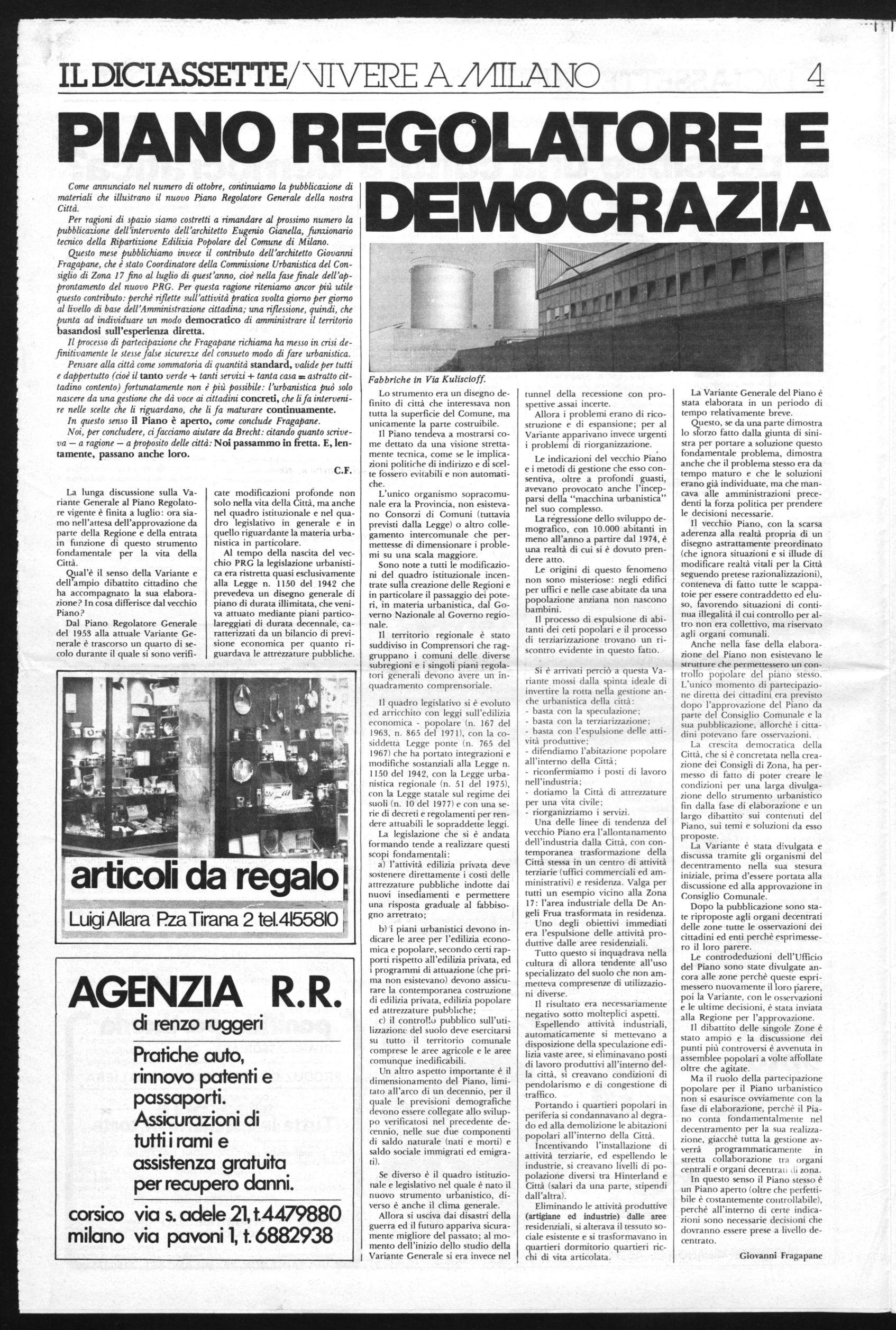 Caro signor Fiorese, come ex lavoratori della De Angeli Frua la ringraziamo per l'ampio servizio pubblicato su"il Diciassette" del giugno 1978. Troviamo esatto quanto specificato riguardg !a storia della De Angeli Fru a .