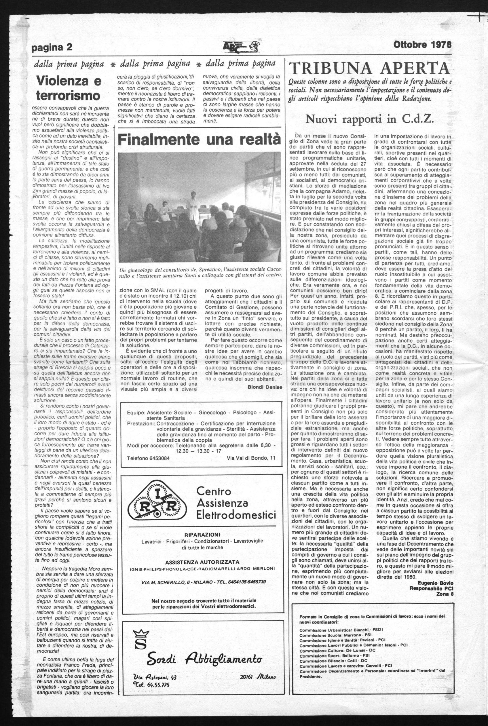In zona 8, dal giorno 18.9.78, è entrato in funzione il Consultorio al quale, come si è ripetutamente ribadito, si può accedere gratuitamente.