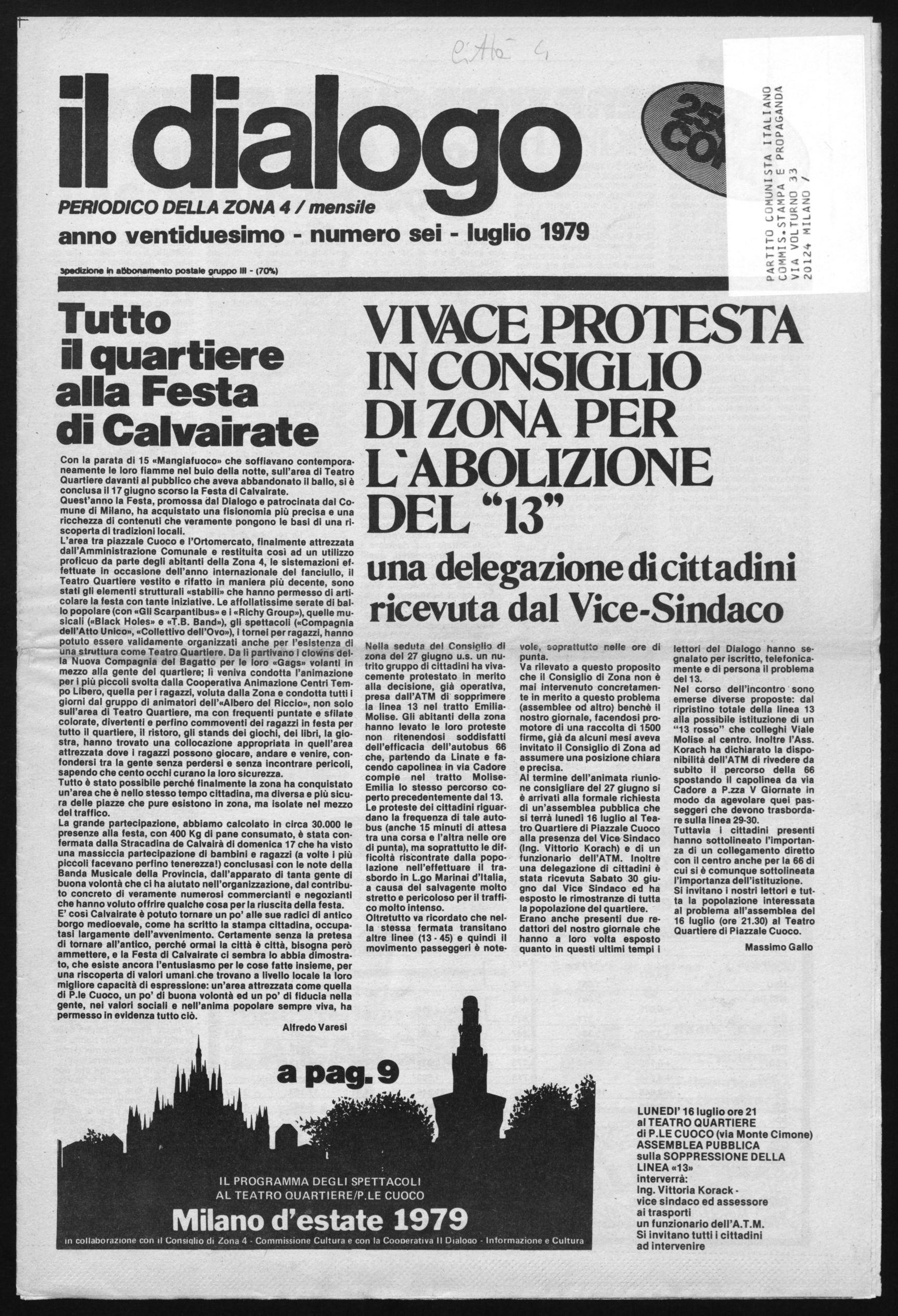 PERIODICO DELLA ZONA 4 / mensile anno ventiduesimo - numero sei - luglio 1979