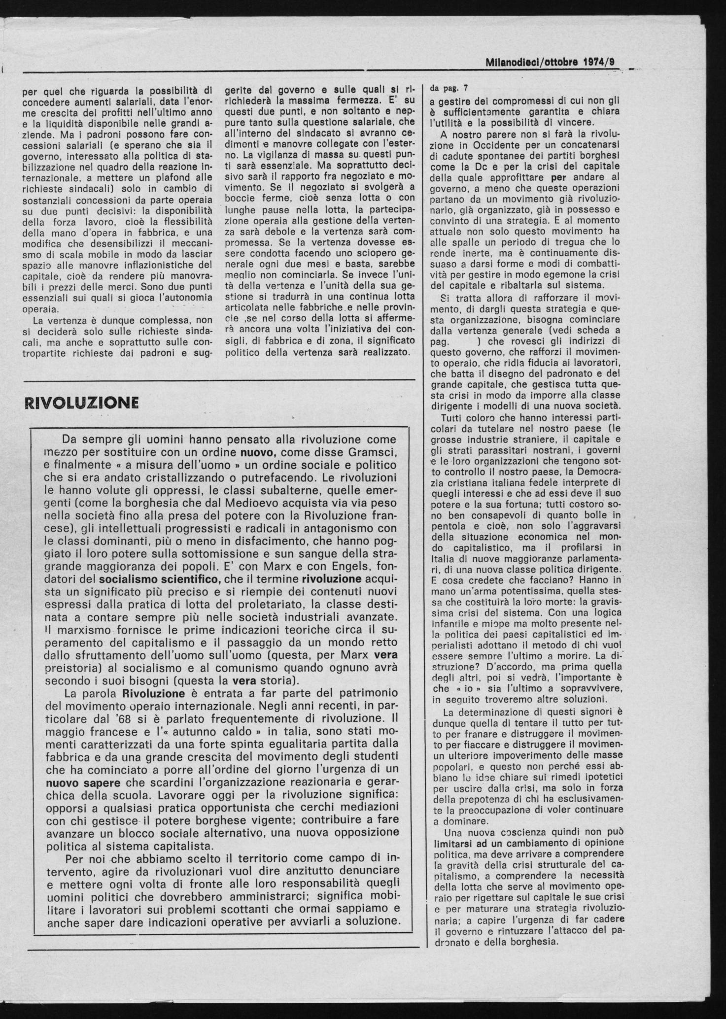 Bisogna darsi quindi da fare nella fabbrica per rendere più combattivi i Consigli, spingerli verso una vertenza che comprenda tutti gii aspetti sociali, che difenda il già inadeguato salario conquistato in fabbrica contro la speculazione sulla casa, il caro affitti, il caro prezzo sui generi di prima necessità, per una scuola più qualificata e più egualitaria che non cominci a discriminare e a selezionare fin dalla più tenera età.
