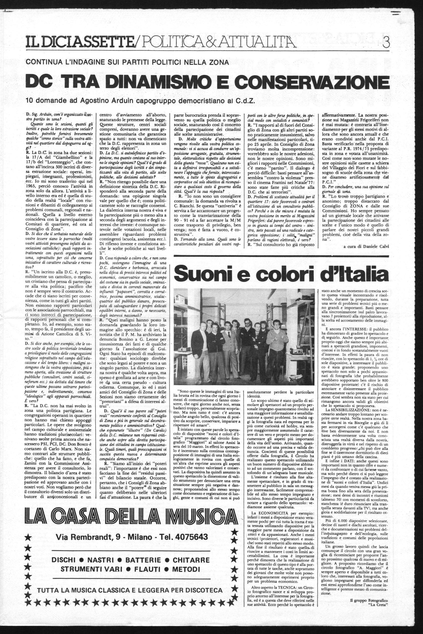 un moltiplicarsi di questo tipo di manifestazioni, a patto che siano fatte seguire da un dibattito con la gente della zolla, ciò avrebbe dovuto verificarsi anche nel corso di questa manifestazione, in concomitanza con la conferenza - dibattito "Dalla scuola alla vita" tenuta dal prof. Degrada il 22 Marzo. Purtroppo