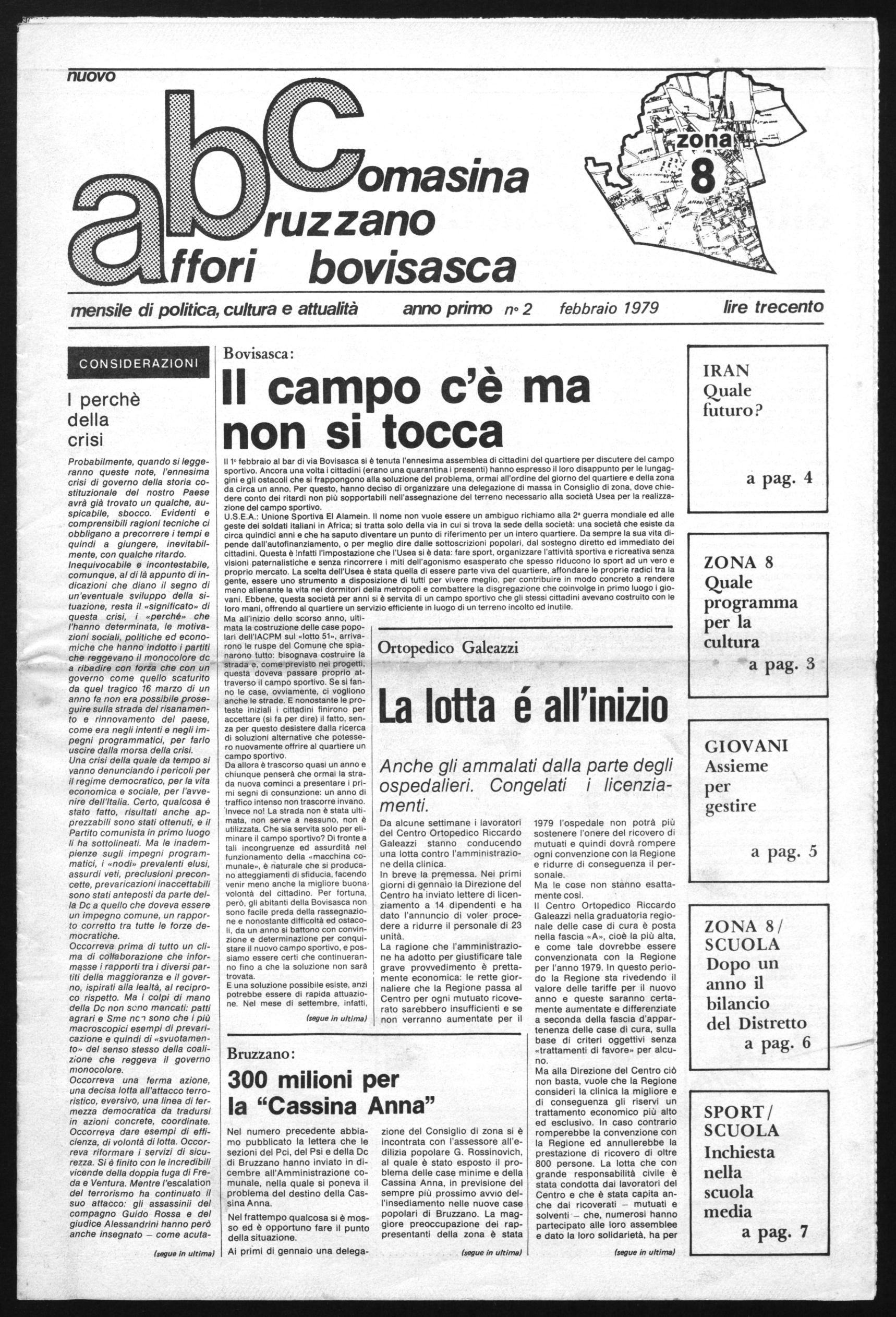 Nella prima decade di febbraio vi sarà la delegazione di massa in Consiglio di zona: purtroppo questo giornale, pur uscendo il 15 di ogni mese chiude in tipografia nella prima settimana e non potremo dar conto del fatto che sul numero di marzo. Fin d'ora, però, mettiamo queste colonne a disposizione dei cittadini, delle forze politiche e sociali, per aprire un confronto che contribuisca a risolvere al più presto il problema che riguarda il quartiere Bovisasca, che se pure è il più «piccolo» della zona non per questo è meno degno di attenzione degli altri!