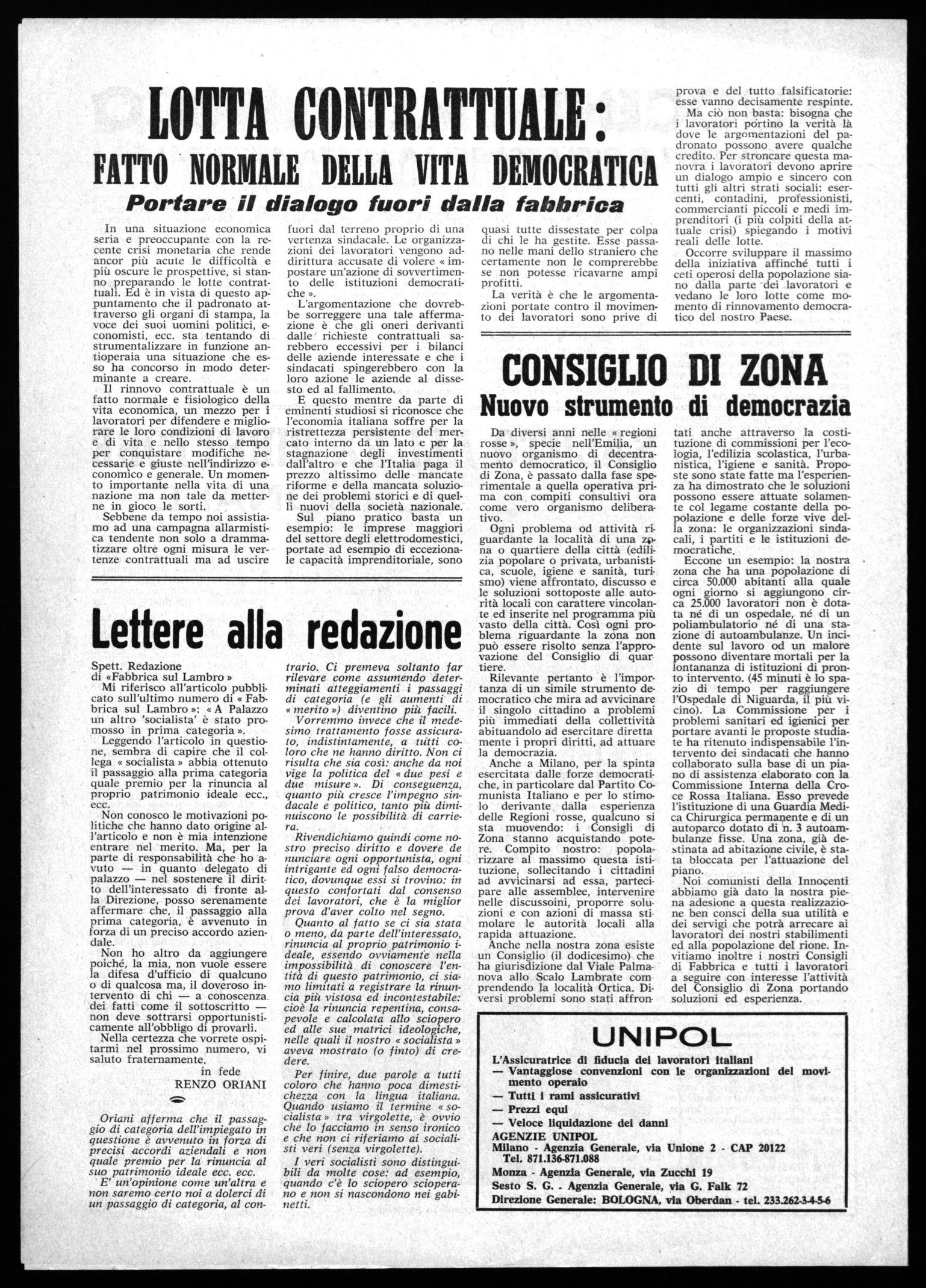 Anche a Milano, per la spinta esercitata dalle forze democratiche, in particolare dal Partito Comunista Italiano e per lo stimolo derivante dalla esperienza delle Regioni rosse, qualcuno si sta muovendo: i Consigli di Zona stanno acquistando potere. Compito nostro: popolarizzare al massimo questa istituzione, sollecitando i cittadini ad avvicinarsi ad essa, partecipare alle assemblee, intervenire nelle discussoini, proporre soluzioni e con azioni di massa stimolare le autorità locali alla rapida attuazione.