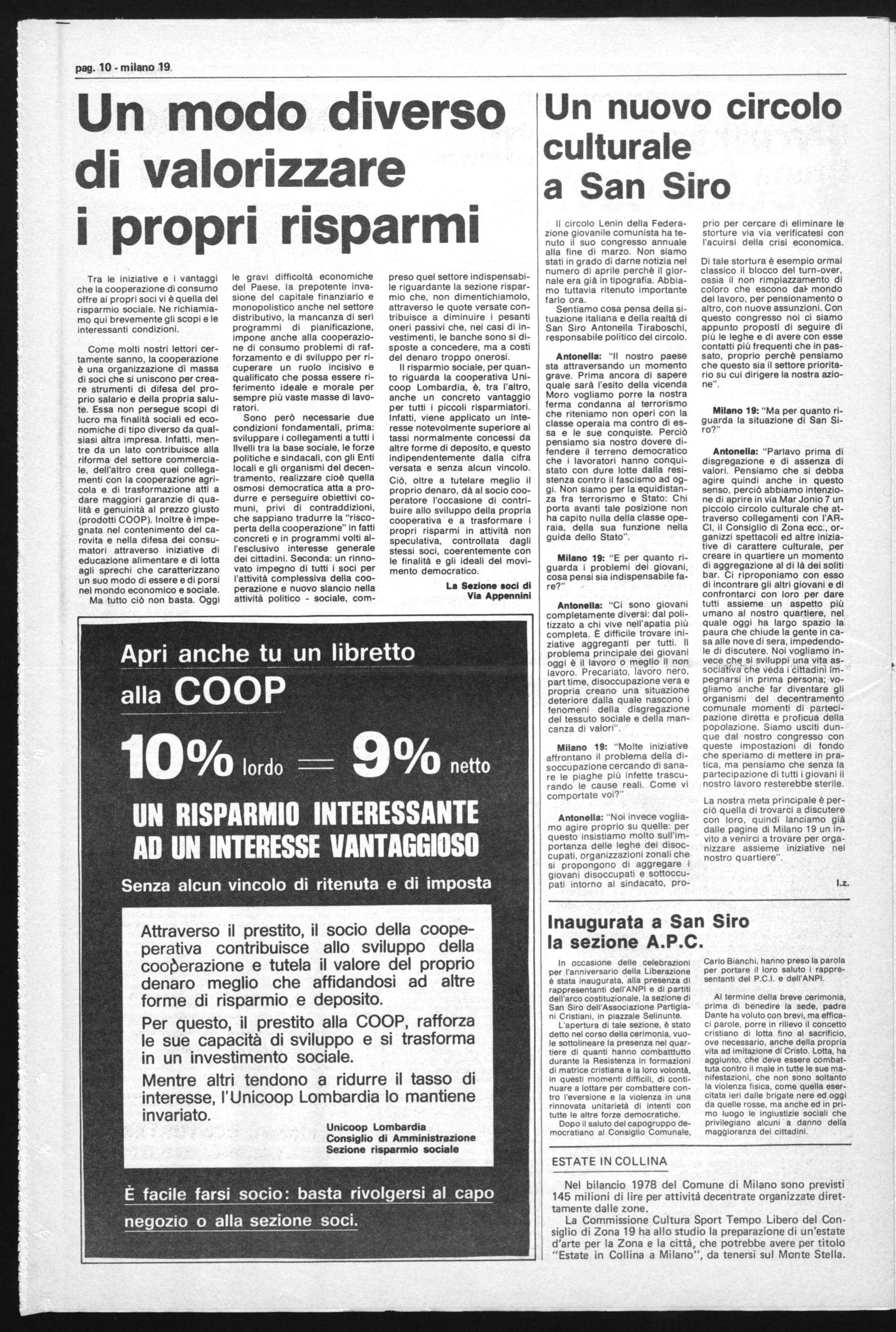 Taramelli: Per un certo periodo vi è stato un deciso miglioramento, poi vi è stata, da parte dei C.d.Z., qualche giustificata lamentela per qualche lentezza in certe risposte e anche perchè qualche Assessore ha dimostrato una certa tendenza a porre in secondo piano i rapporti tra Amministrazione comunale e C.d.Z.. Milano 19: Un'ultima domanda. Quali sono i maggiori ostacoli che si frappongono tra i cittadini ed i C.d.Z. e come si pensa di rimuoverli?