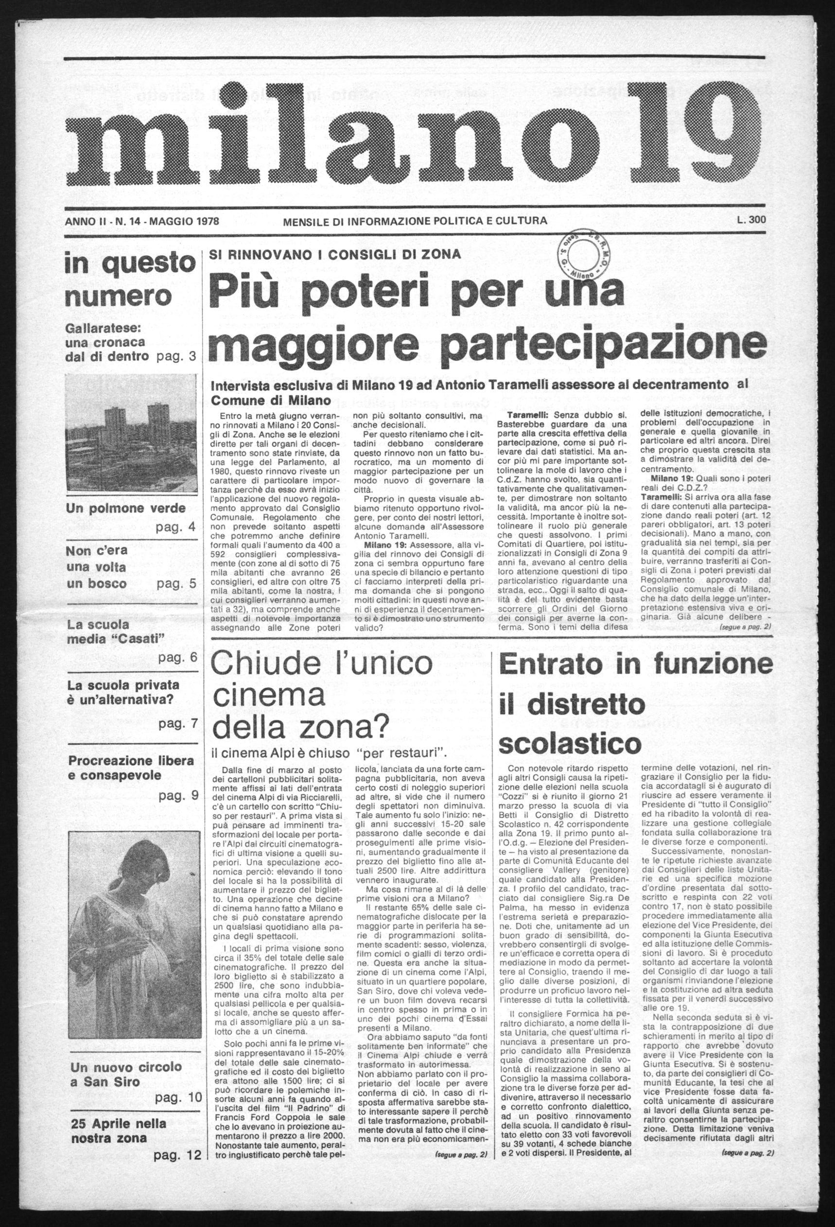 5 aprile 19781. Nuova delegazione a Palazzo Marino perchè gli impegni presi non sono stati rispettati. La Giunta municipale si impegna a pronunciarsi entro il 10 maggio su un documento sul problema Gallaratese, che dovrebbe essere approntato entro il 24 aprile dalla commissione urbanistica consigliare.