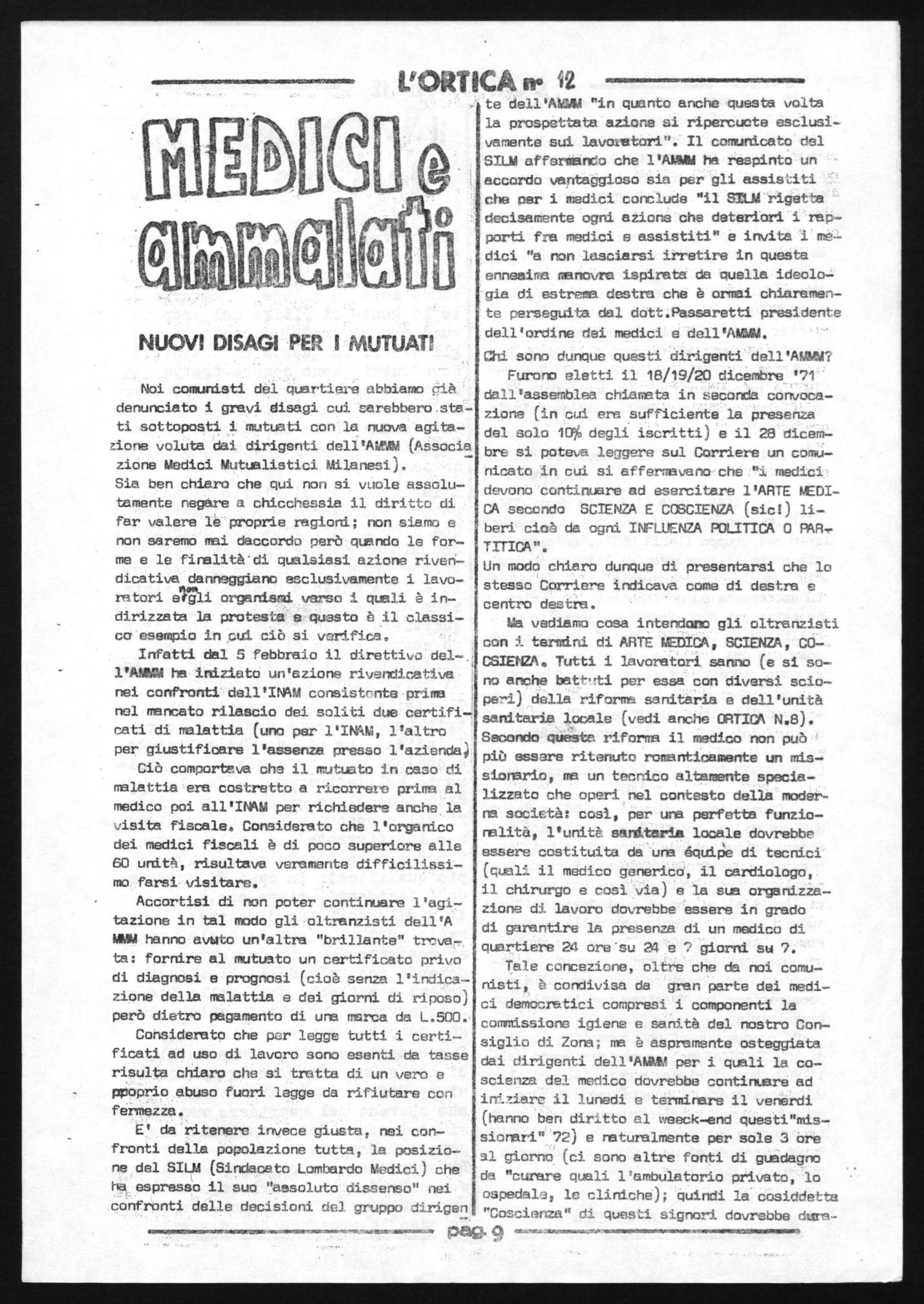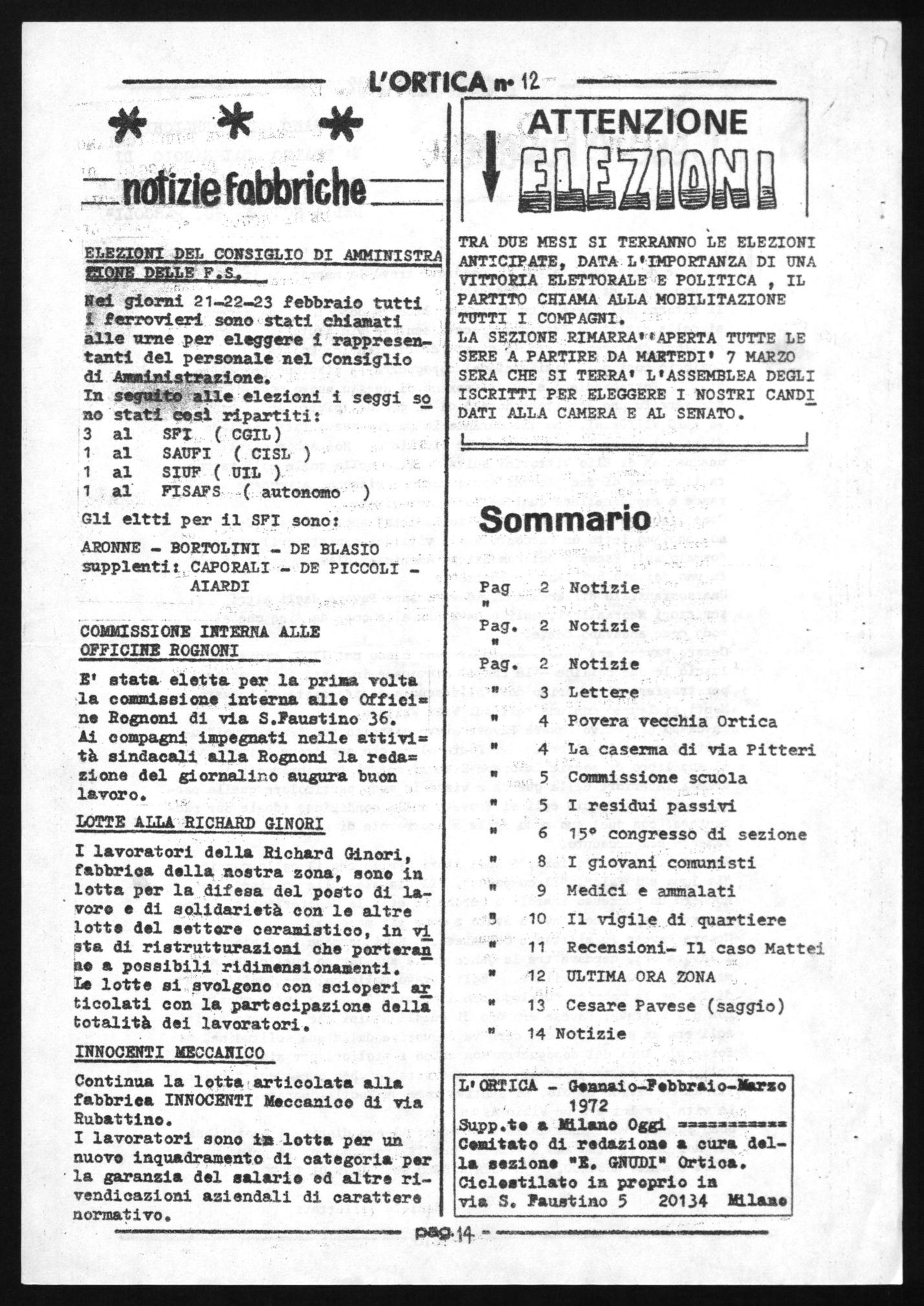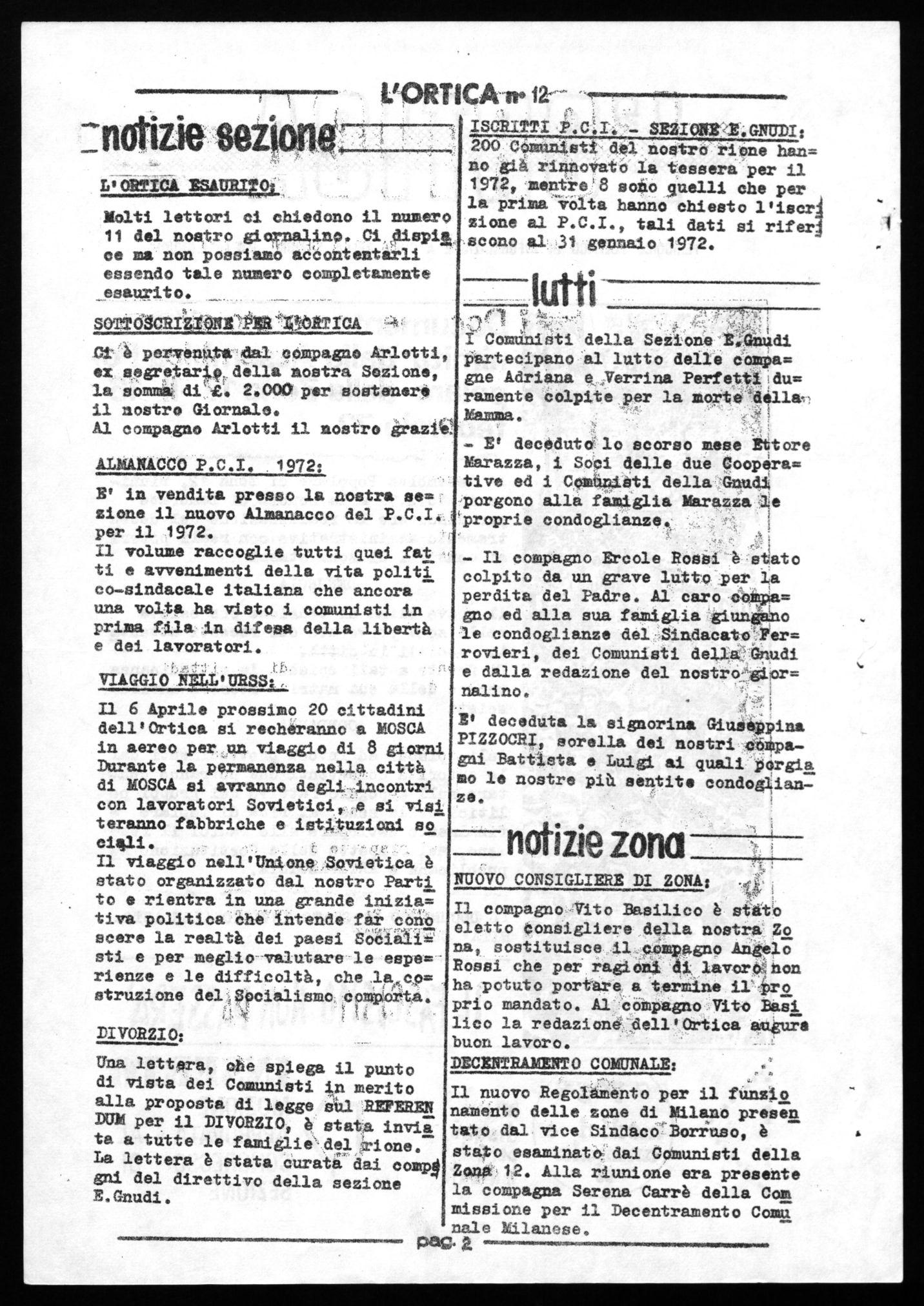 A questo proposito il Consiglio di Zona, riunito il 25 febbraio ha votato una mozione urgente, quasi alla unanimità, di variante al Piano Regolatore, richiedendo che il terreno sopracitato sia destinato a servizi sociali, • specialmente costruzione di case popolari, che dovranno essere costruite in previe. alone della ristrutturazione del quartiere, e specialmente delle vecchie case di via Ortica.