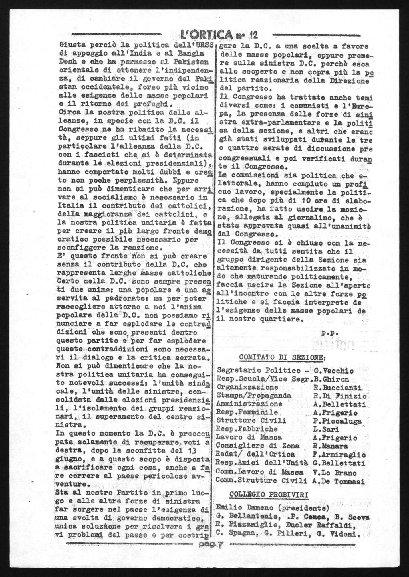 Verso là metà del mese di gennaio si è tenuto nella nostra Sezione il Congresso del Partite che ha visto la partecipazione di un buon numero di compagni (in particolare la dome niol pomeriggio) con la' presenza de irieegretatio del P.S.I. locale, e il vinérdl sera che ha registrato la presenza di una decina di adaren ti ai Rovinante Studentesco; il responsabile del P.S.I.U.P. locale, non potendo essere presento ha inviato un caloroso saluto.