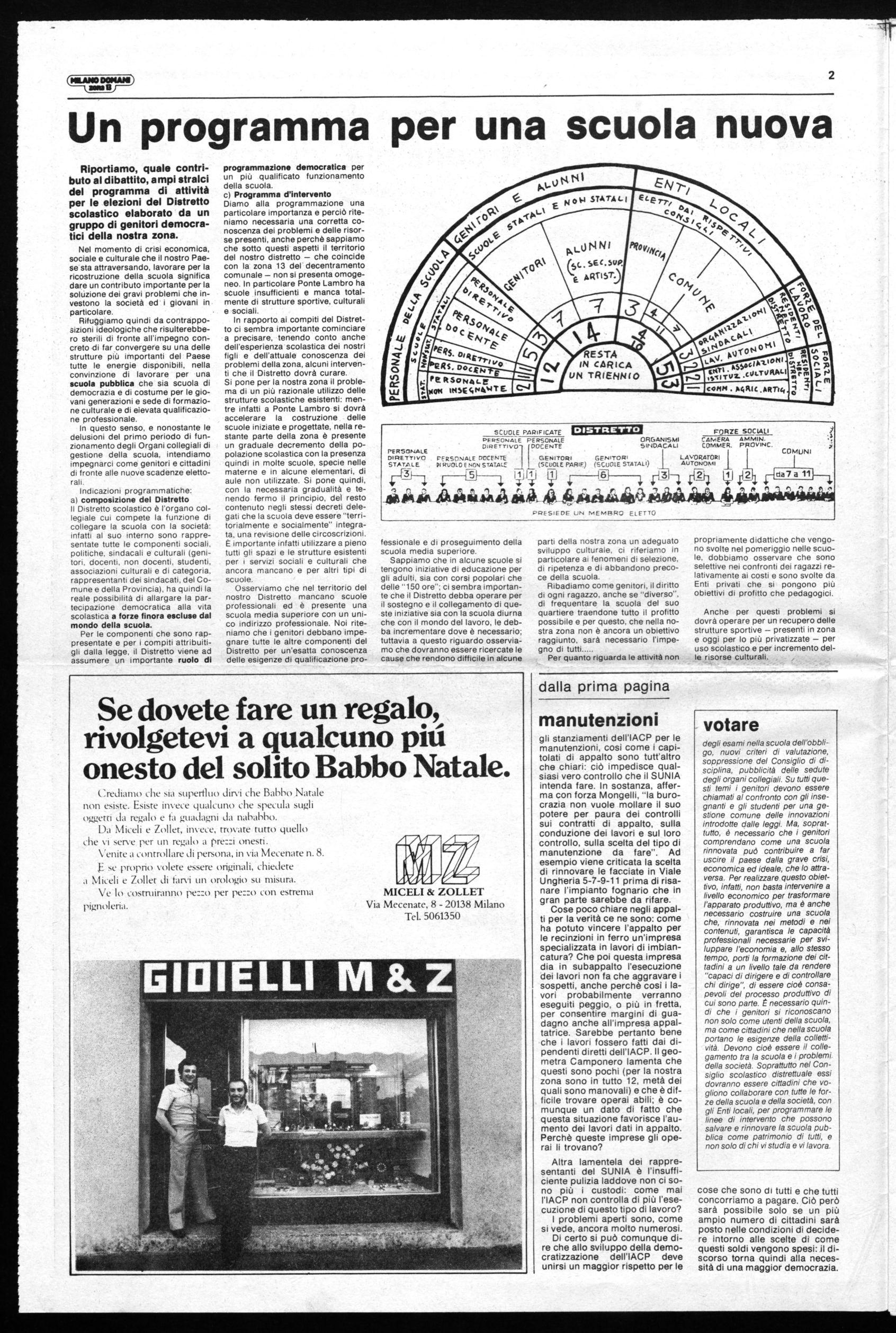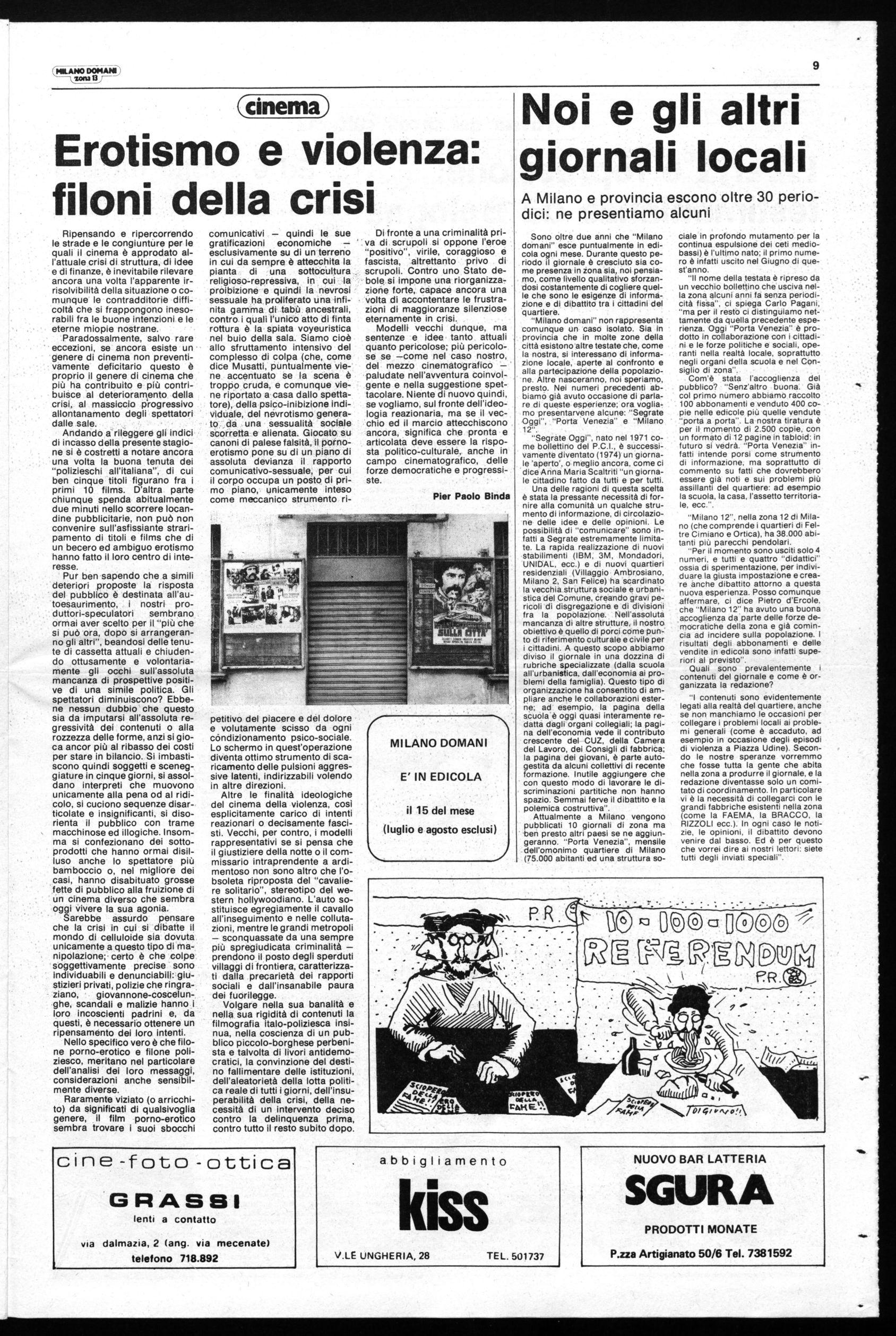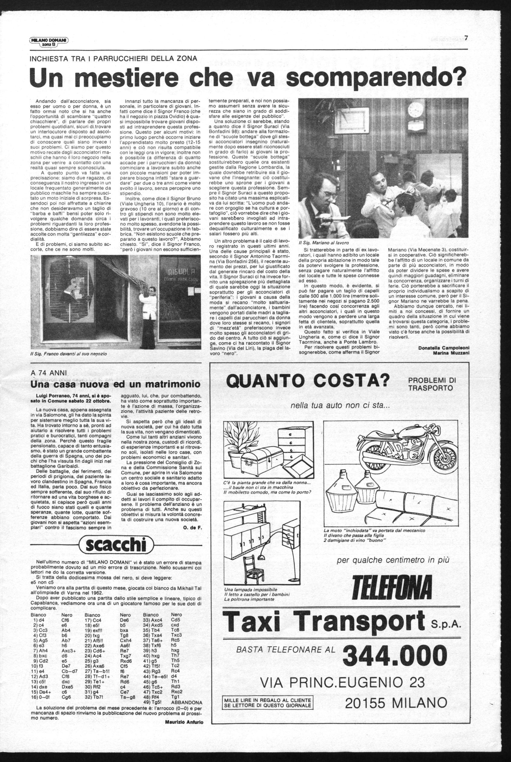 Dal 18 al 23 Ottobre "Il Giornale nuovo" ha dedicato una pagina al giorno alla nostra zona e alla zona 11. Molto spazio quindi e molti articoli. Sapevamo in precedenza di questa iniziativa perchè la settimana prima due giornalisti del quotidiano di Montanelli avevano girato in lungo e in largo per la zona, avevano avuto lunghi colloqui con i rappresentanti più attivi del Consiglio di zona e con noi di "Milano domani"che avevamo fornito loro tutte le informazioni richiesteci. Non che con questo ci aspettassimo un risultato giornalistico migliore di quello che poi abbiamo avuto: esprimendo la speranza chele nostre dichiarazioni fossero riportate fedelmente il giornalista de "II Giornale" non era stato in grado di garantircelo perché, sono sue testuali parole, "i condizionamenti che i giornalisti sono costretti a subire sono spesso troppo forti e non si riesce a resistervi". Nonostante ciò abbiamo