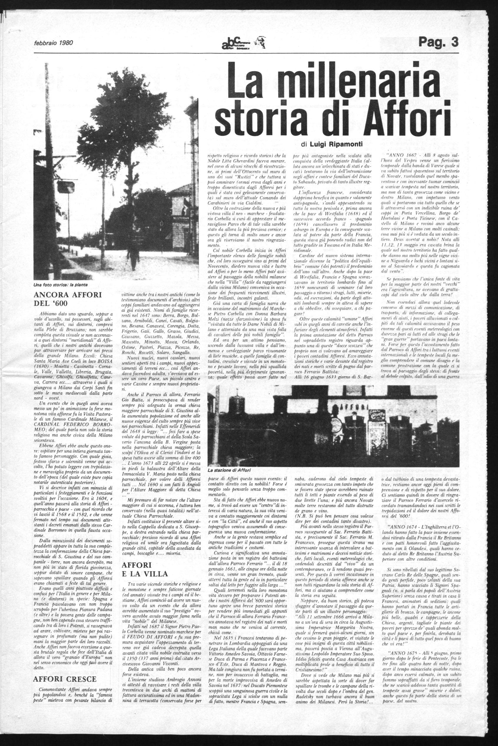 o dal tui-binio di una tempesta devastatrice. restiamo ancor oggi pieni di comprensione e di rispetto per il suo dolore. Ci sentiamo quindi in dovere di ringraziare il Parroco Ferrario d'avercelo ricordalo tramandandoci nei suoi scritti le trepidazioni ed il dolore dei nostri Afforesi del '600!