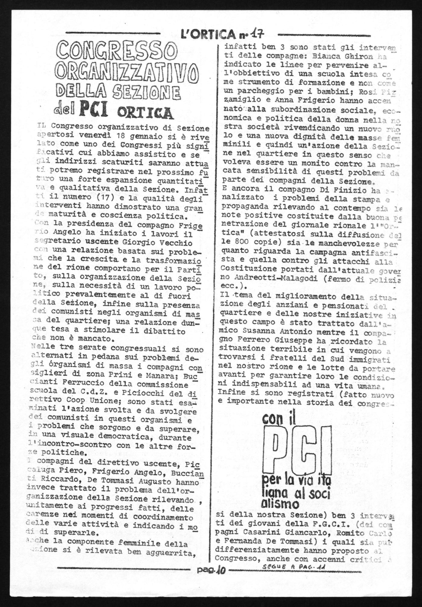 Tale successo si completa con la diffusione domenicale di 60 copie tra 'Noi donne" "Vie-giorni" e di 250 copie dell'"Uhítà"; inoltre è da segnalare anche che lo scor so numero dell'Ortica è completamente esaurito.