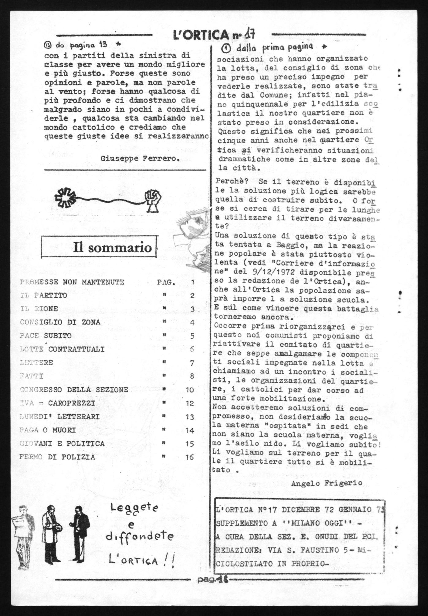 Chi desidera segnalare notizie ed avvenimenti che riellardano il nostro rione può telefonare ai numero 72.88.91 o scrivere presào la redazione dell'Ortica in via San Faustino, 5 -