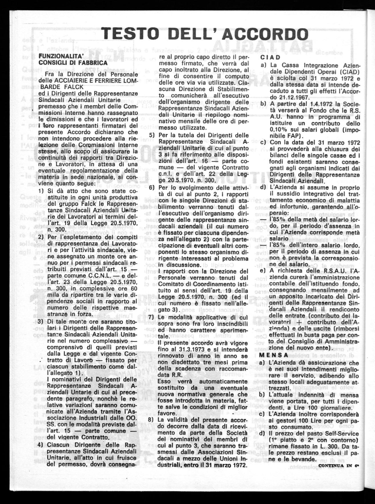La Cassa Integrazione Aziendale Dipendenti Operai (CIAD) è sciolta col 31 marzo 1972 e dalla stessa data si intende decaduto a tutti gli effetti l'Accordo 21.12.1967.