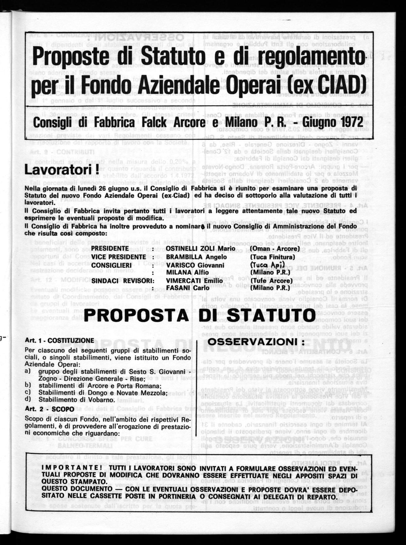 II Consiglio di Fabbrica invita pertanto tutti i lavoratori a leggere attentamente tale nuovo Statuto ed esprimere le eventuali proposte di modifica.