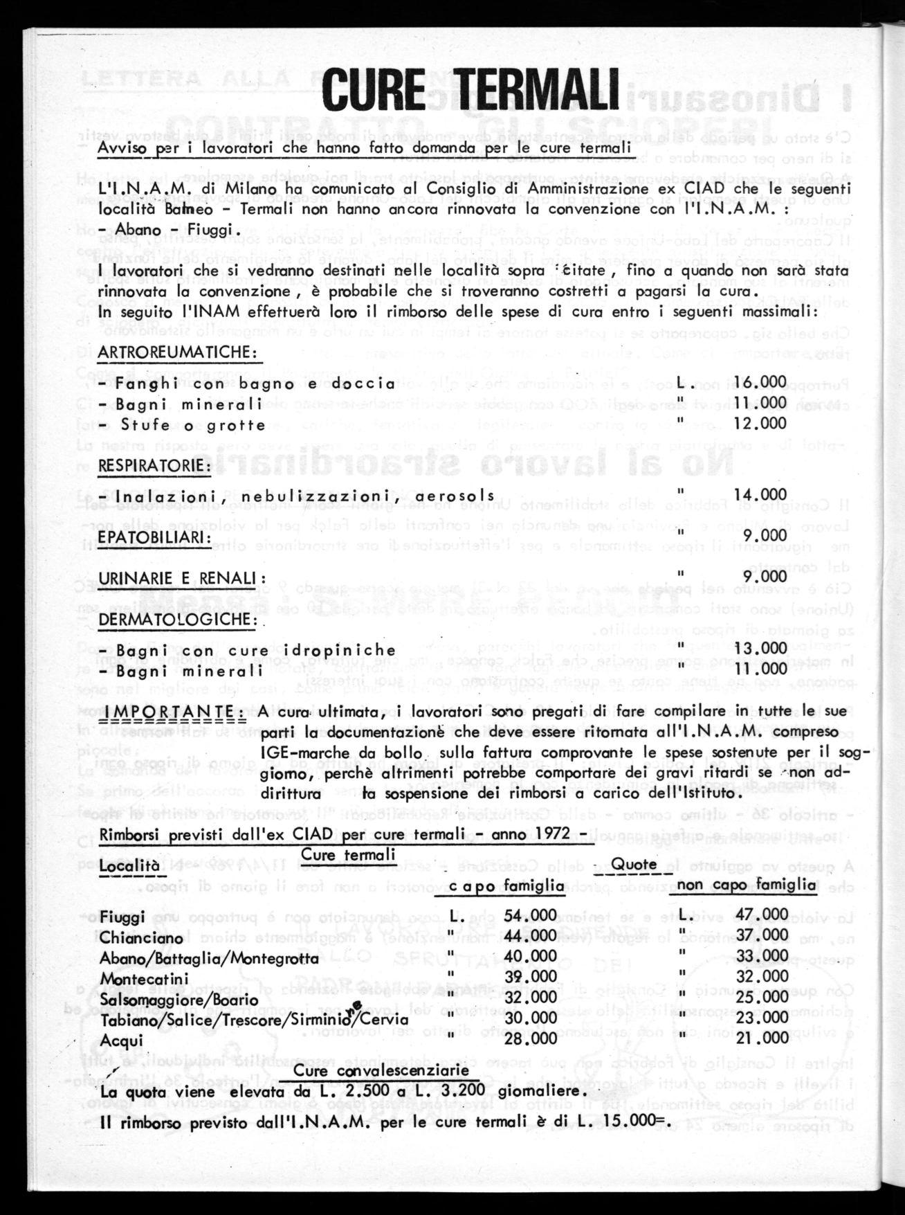 Rimborsi previsti dall'ex CIAD per cure termali - anno 1972 -