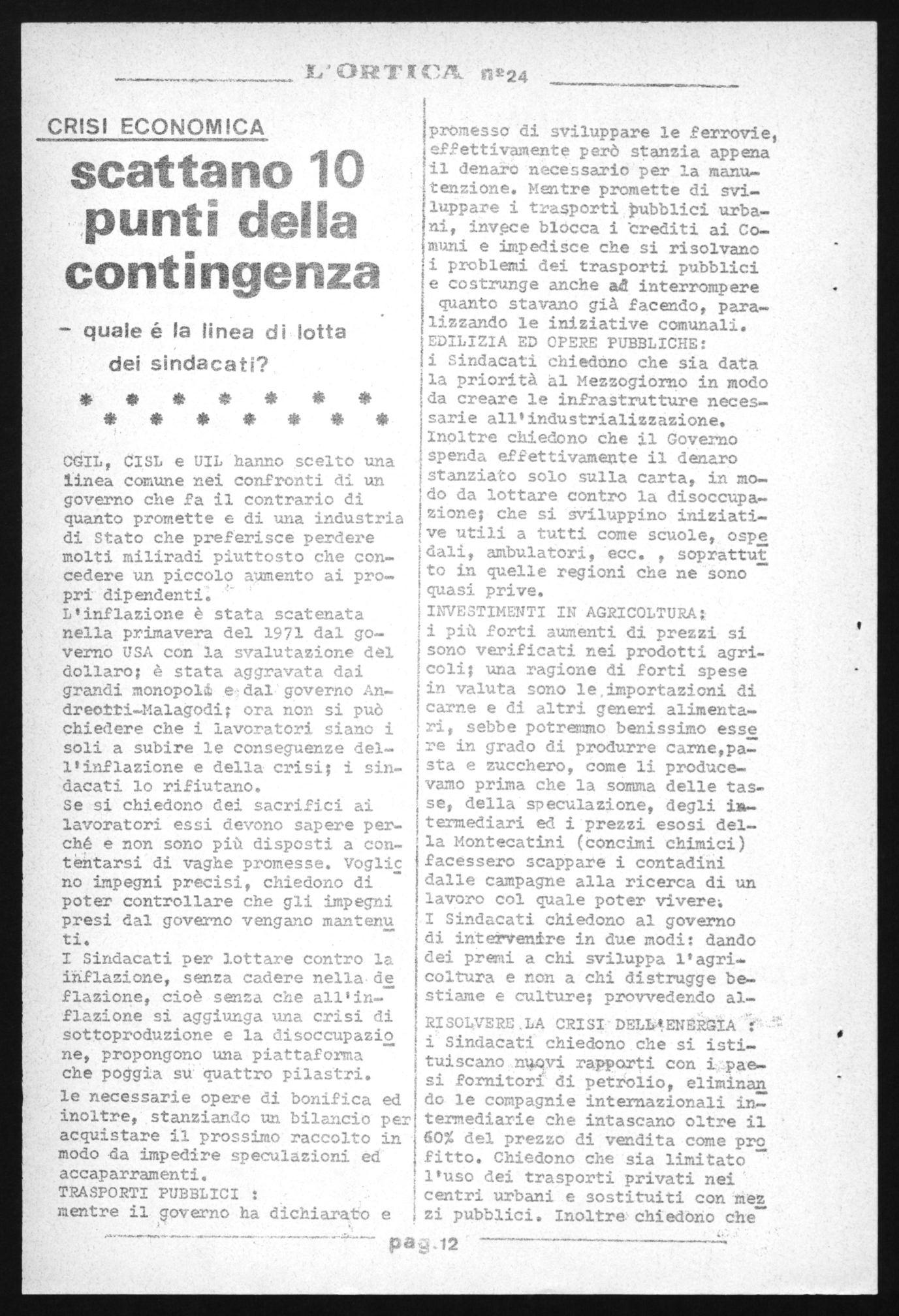 sintesi, i sindacati chiedono che., nell'attuale difficile situazione, si difendano prima di tutto gli strati più poveri della popola zione; inoltre che si diano delle possibilità di controllo agli altri lavoratori affinché i loro sacrilì ci non siano inutili, ma permettano effettivamente di superare la crisi e l'inflazione, creando una società più giusta e più produttiva nell'interesse di tutti e non solo di pochi privilegiati.