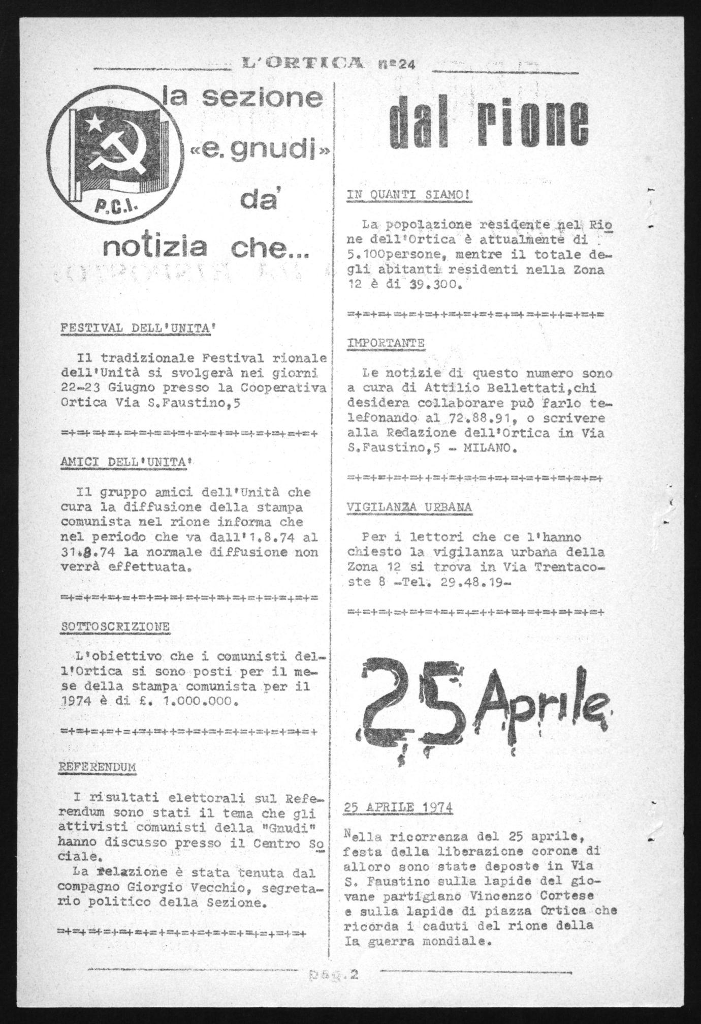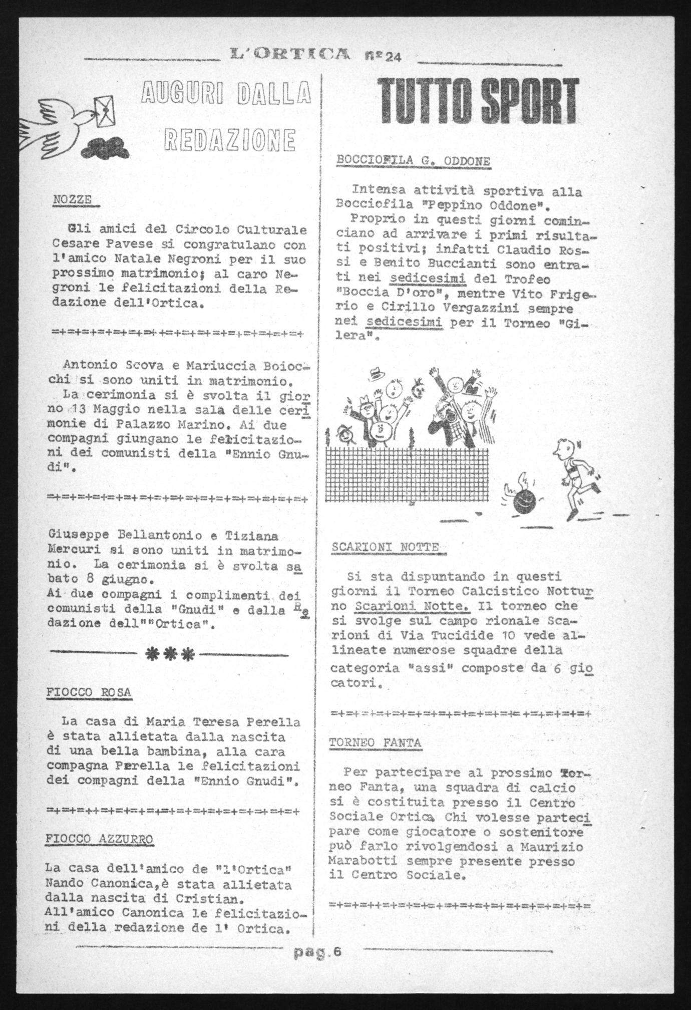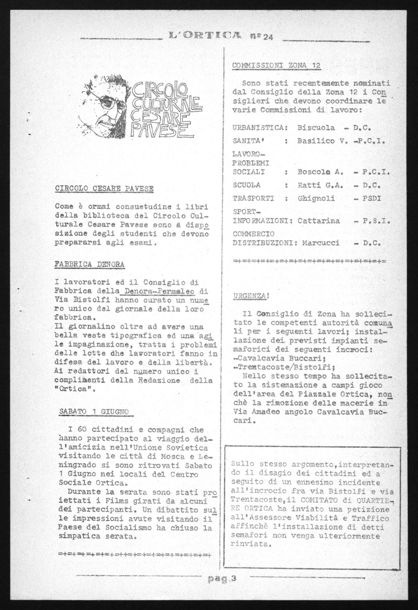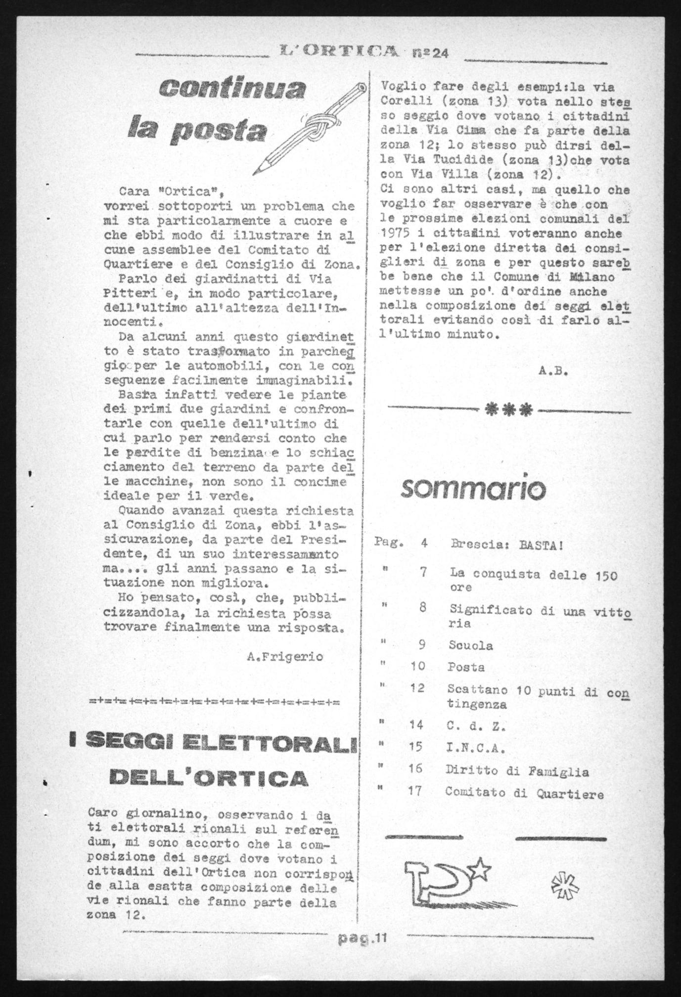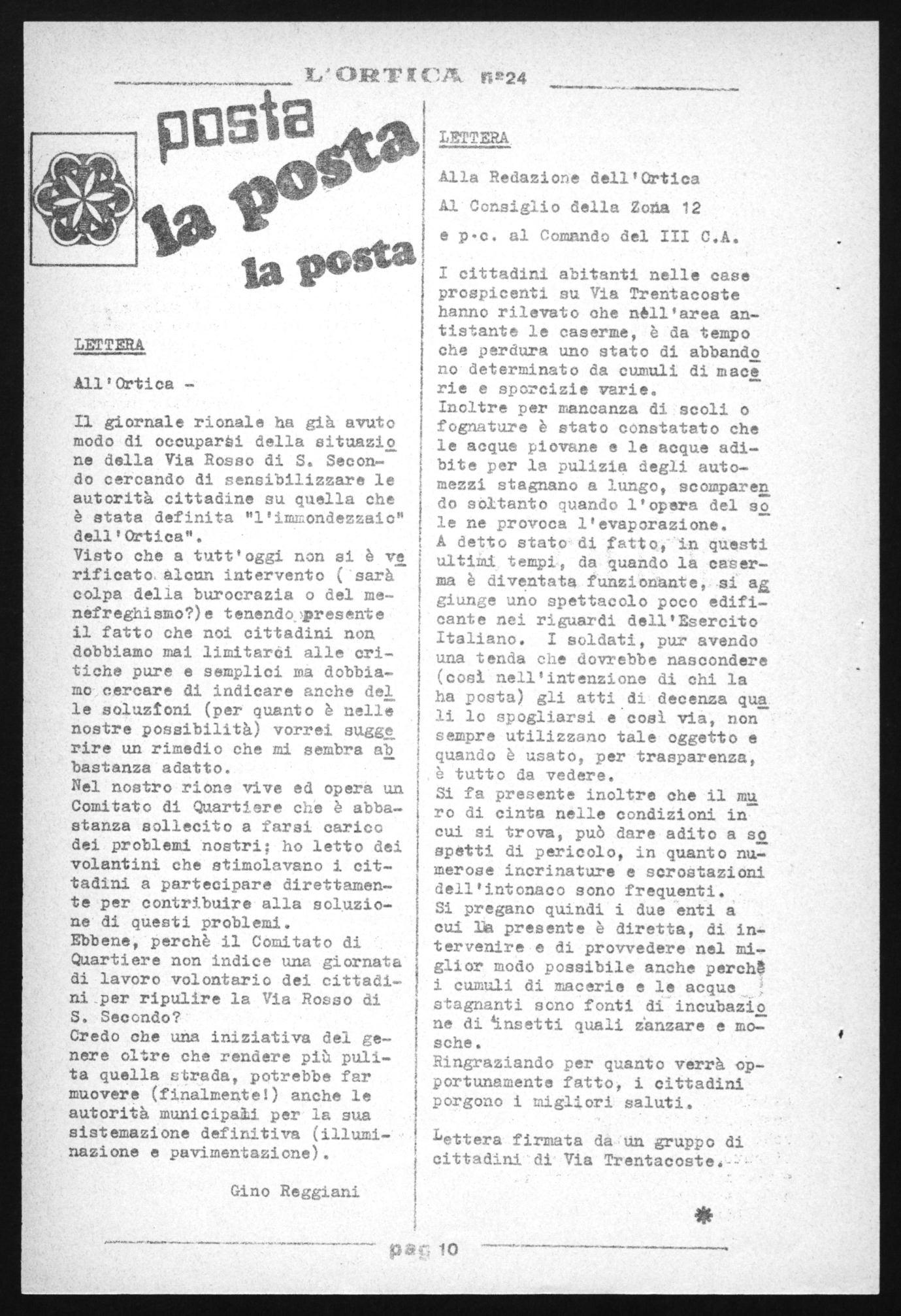 Le notizie di questo numero sono a cura di Attilio Bellettati,chi desidera collaborare può farlo telefonando al 72.88,91, o scrivere alla Redazione dell'Ortica in Via S.Faustíno,5 - MILANO.