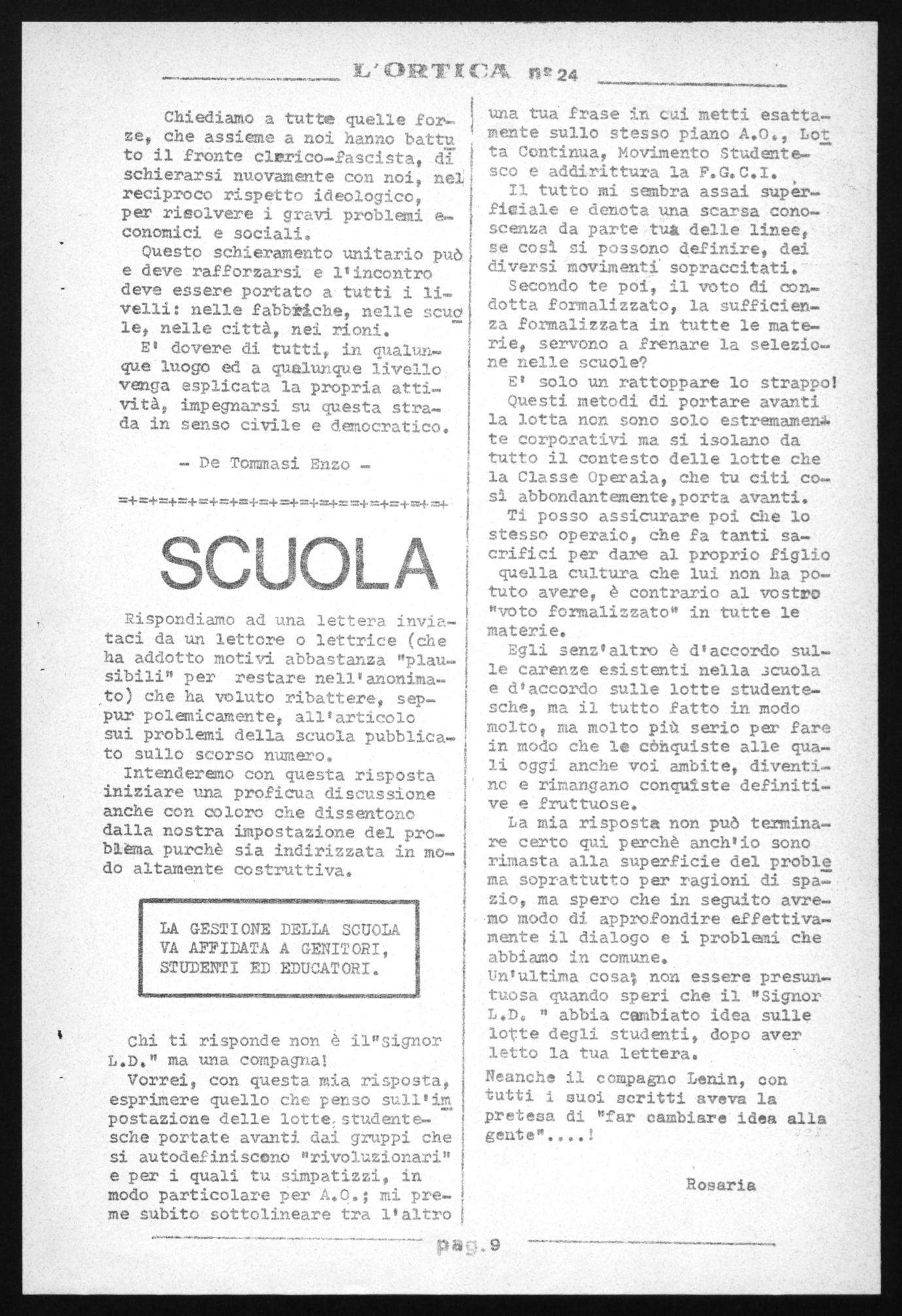 Il giornalino oltre ad avere una bella veste tipografica ed una agi le impaginazione, tratta i. problemi delle lette dhe lavoratori fanno in difesa del lavoro e della libertà. Ai redattori del numero unico i. compliMenti della Redazione della "Ortica",