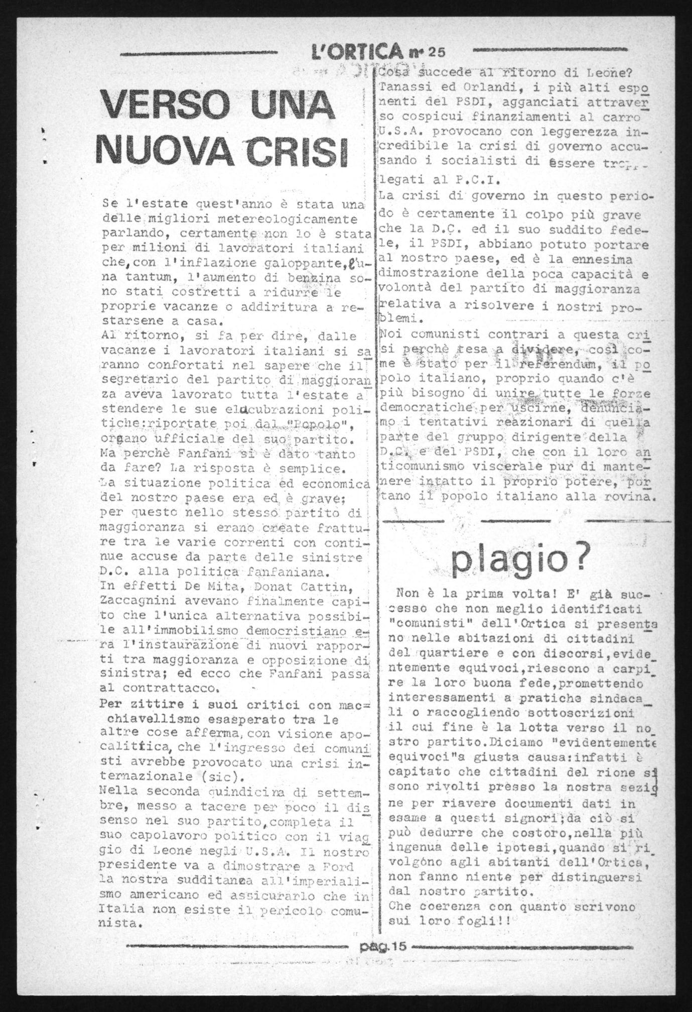 do è certamente il colpo più grave che la D.C. ed il suo suddito fedele, il PSDI, abbiano potuto portare al nostro paese, ed è la ennesima dimostrazione della poCa capacità e volontà del partito di maggioranza (relativa a risolvere i nostri problemi.
