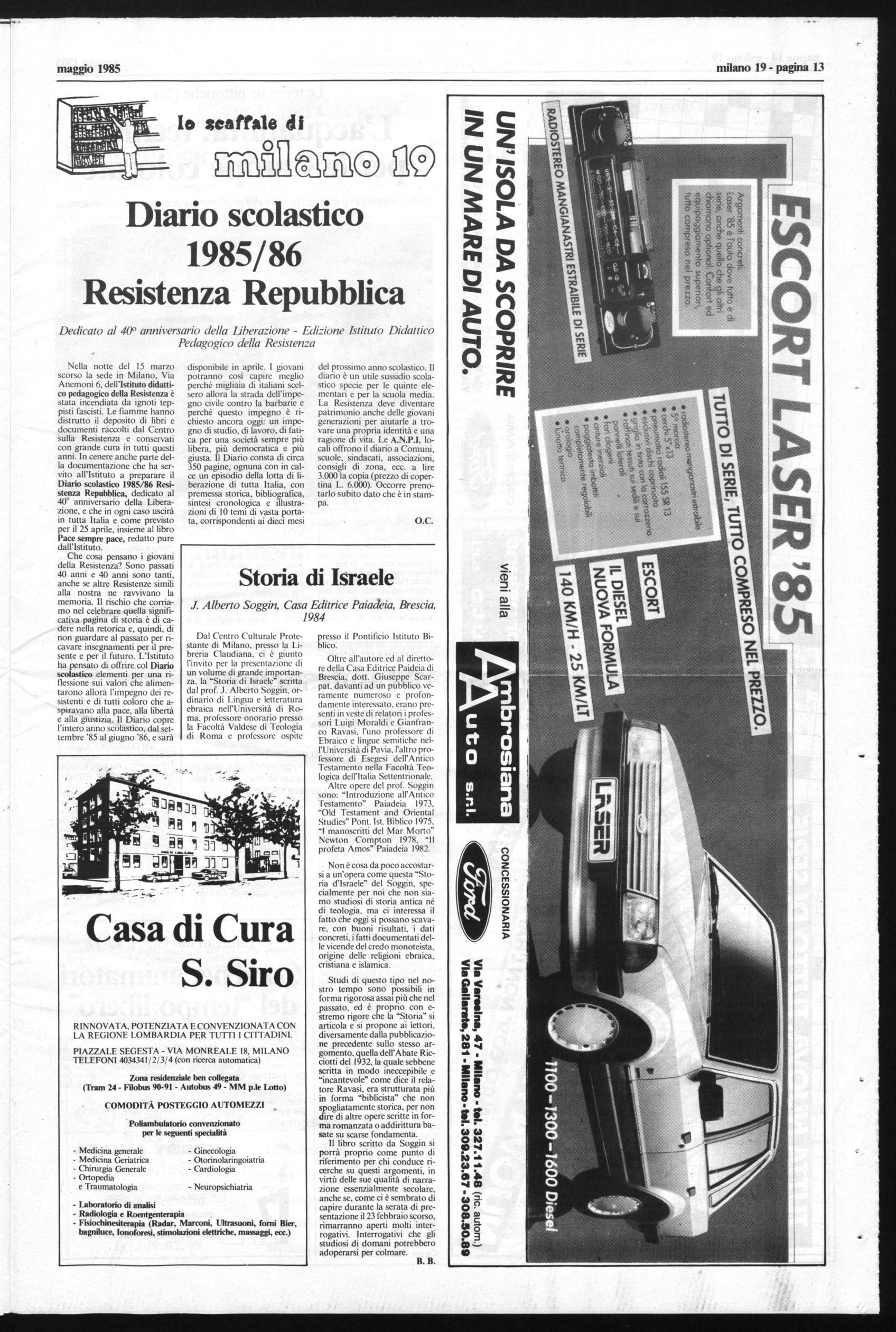 Non è cosa da poco accostarsi a un'opera come questa "Storia d'Israele" del Soggin, specialmente per noi che non siamo studiosi di storia antica né di teologia, ma ci interessa il fatto che oggi si possano scavare, con buoni risultati, i dati concreti, i fatti documentati delle vicende del credo monoteista, origine delle religioni ebraica, cristiana e islamica.