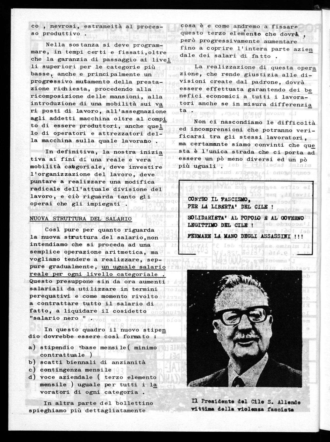 Così pure per quanto riguarda la nuova struttura del salario,non intendiamo che si proceda ad una semplice operazione aritmetica, ma vogliamo tendere a realizzare, seppure gradualmente, un uguale salario reale per ogni livello categoriale . Questo presuppone sin da ora aumenti salariali da utilizzare in termini perequativi e come momento rivolto a contrattare tutto il salario di fatto, a liquidare il cosidetto "salario nero "