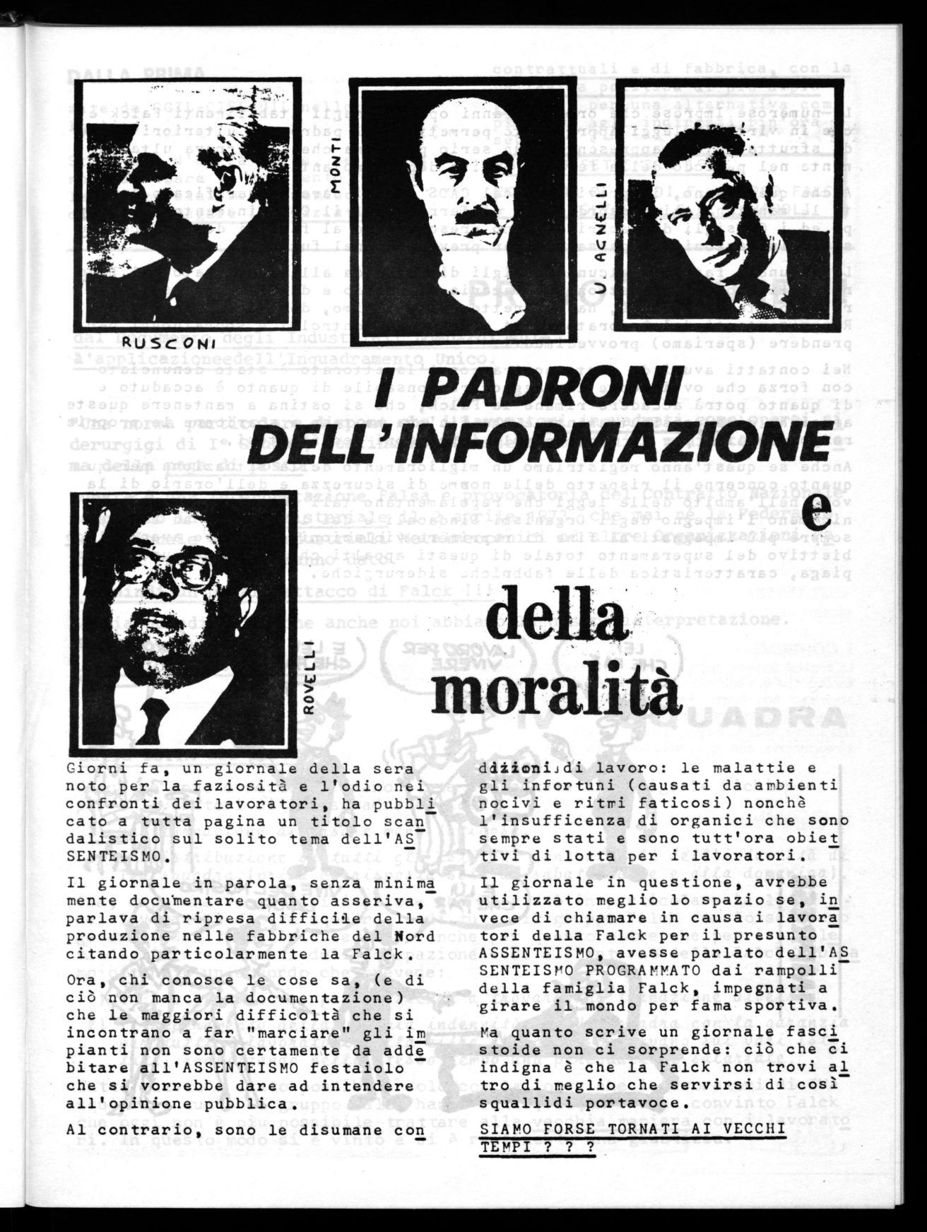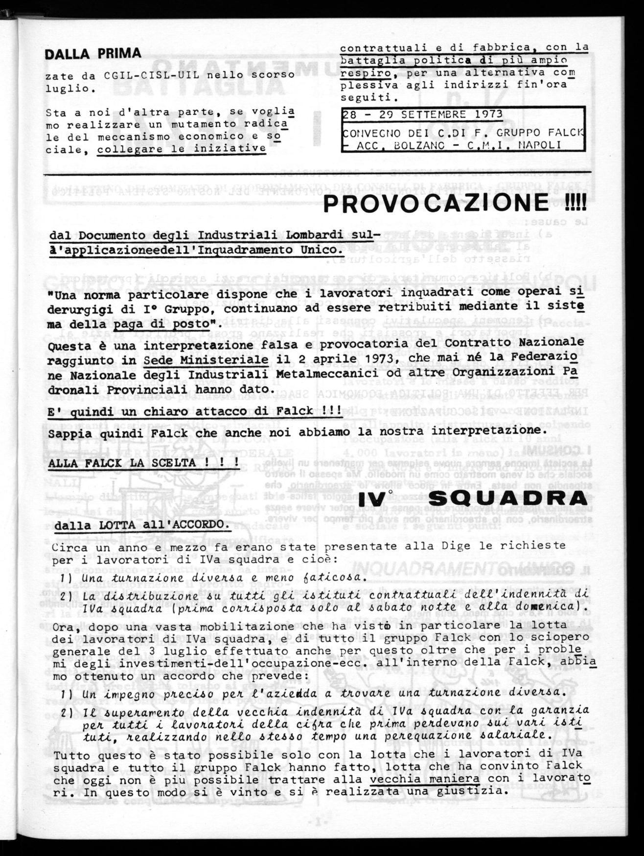 Tutto questo è stato possibile solo con la lotta che i lavoratori di IVa squadra e tutto il gruppo Falck hanno fatto, lotta che ha convinto Falck che oggi non è piu possibile trattare alla vecchia maniera con i lavorato ri. In questo modo si è vinto e si è realizzata una giustizia.