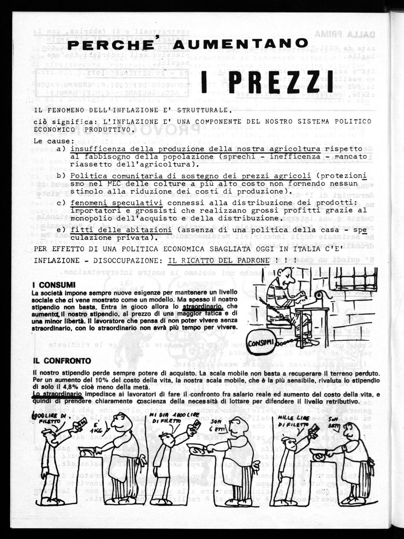 Il nostro stipendio perde sempre potere di acquisto. La scala mobile non basta a recuperare il terreno perduto. Per un aumento del 10% del costo della vita, la nostra scala mobile, che è la più sensibile, rivaluta io stipendio di solo il 4,8% cioè meno della metà. impedisce ai lavoratori di fare il -confronto fra salario reale ed aumento del costo della vita, e qu n pren ere chiaramente coscienza della necessità di lottare per difendere il livello retributivo.