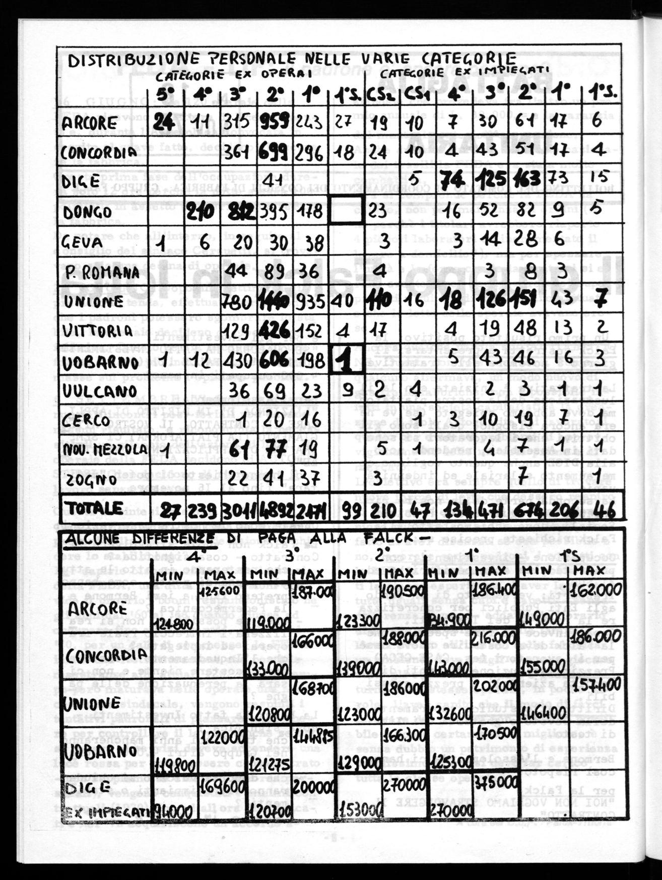 I dati pubblicati sono realtivi a alcune fabbriche e sedi di ufficio del Gruppo,comprendendo nei minimi e nei massimi lavoratori di I° e II° gruppo - siderurgici e non. Ci riserviamo in seguito, di dare situazioni particolari ed il nume ro di lavoratori di ogni fabbrica.