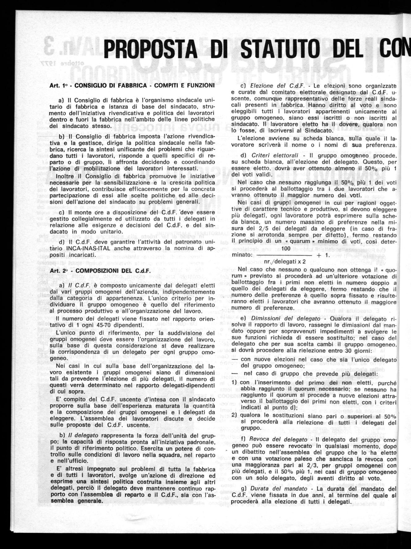 Occorre perciò rafforzare la unità di tutti i lavoratori, e nello stesso tempo darsi strumenti, il nuovo C.d.F., in grado di segnare in modo positivo la gestione della lotta aziendale.