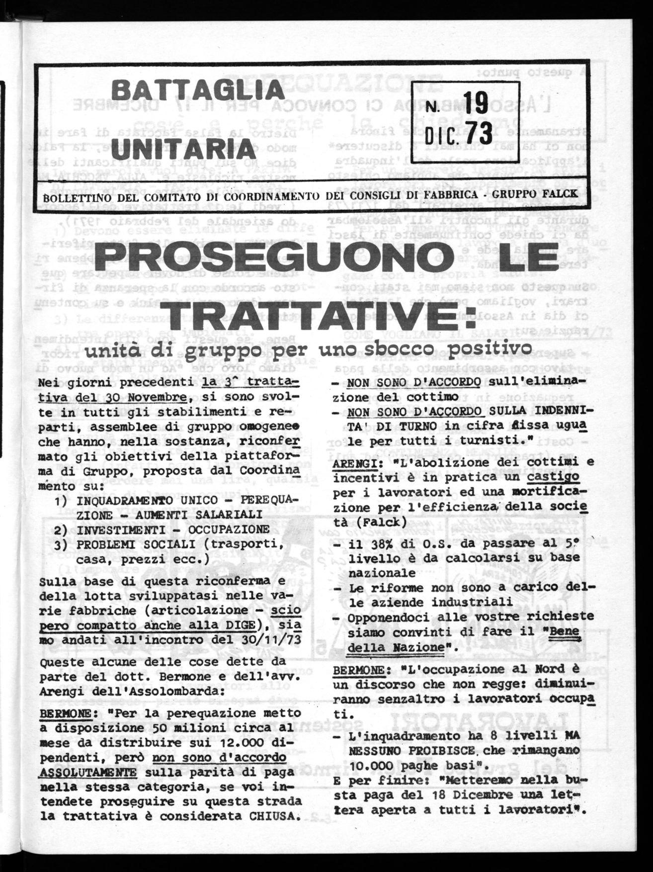 Dietro la falsa facciata di fare in modo diverso le trattative, la Falck dice NO sui punti qualificanti delle nostre richieste e, ALLA VECCHIA MA NIERA1 vuole tirare per le lunghe ( vedi le 17 trattative dell'accordo aziendale del Febbraio 1971).