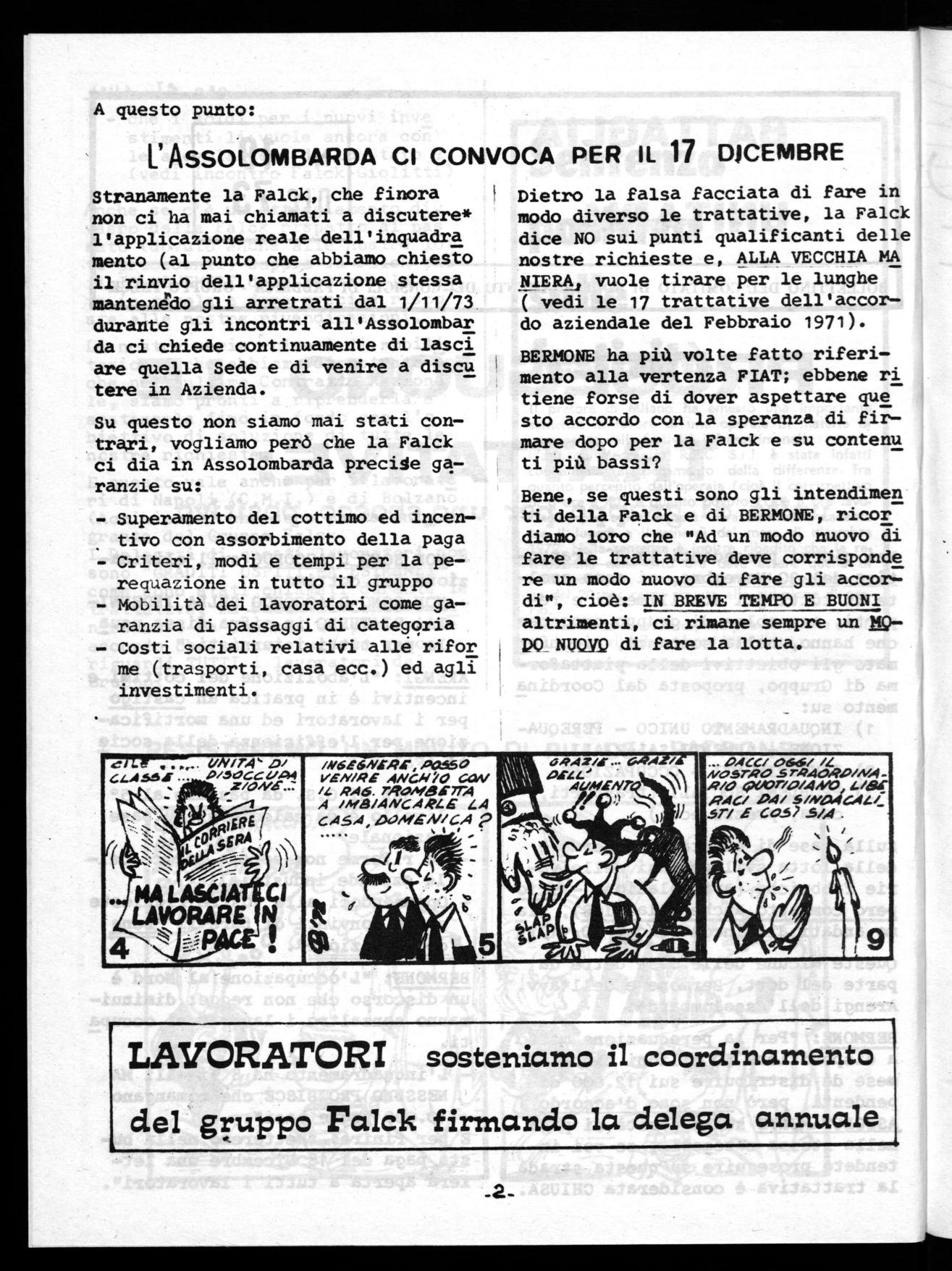 Bene, se questi sono gli intendimen. ti della Falck e di BERMONE, ricor diamo loro che "Ad un modo nuovo di fare le trattative deve corrisponde re un modo nuovo di fare gli accordi", cioè: IN BREVE TEMPO E BUONI altrimenti, ci rimane sempre un m9DO NUM di fare la lotta.