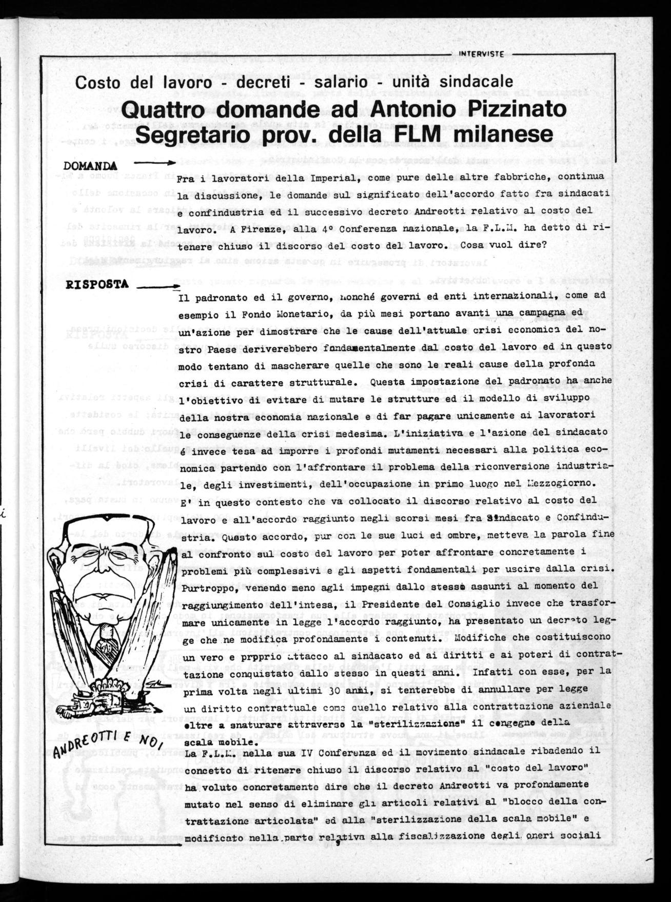 a cura del GOnsiglio di fabbrica FLM dei lavoratori IRT-FIR