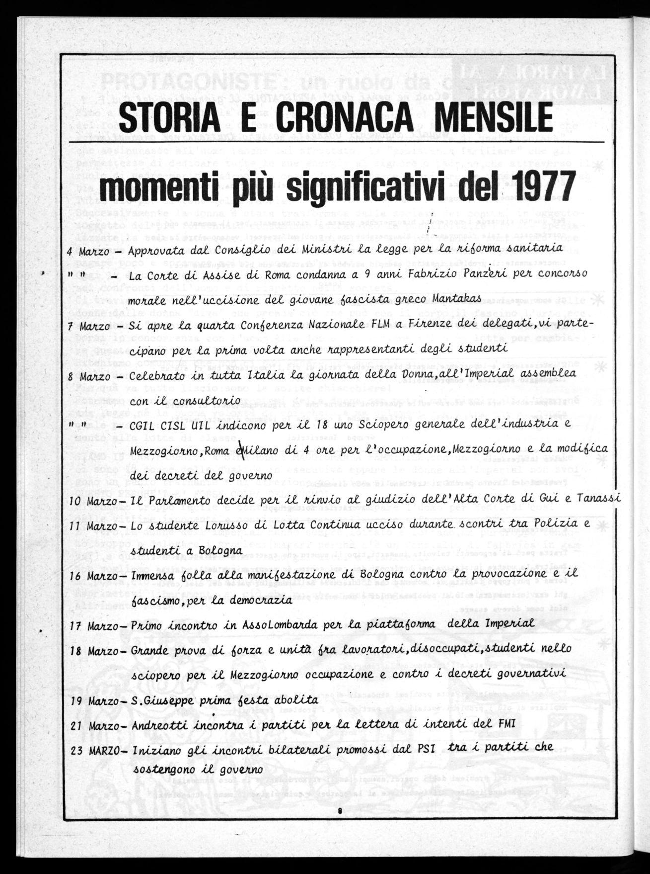 In esso ci sono alcuni elementi di novità. Il primo e il più pericoloso è il fatto che all'interno di una tale crisi che è reale si inseriscono con molta facilità elementi provocatori (come gli autonomi) che hanno imposto con atti provocatori e violenti un terreno di lotta che è più con geniale alle squadracce fasciste che ad 113. movimento unitario,democratico e di massa. Il secondo è che c'è qualcuno che soffia