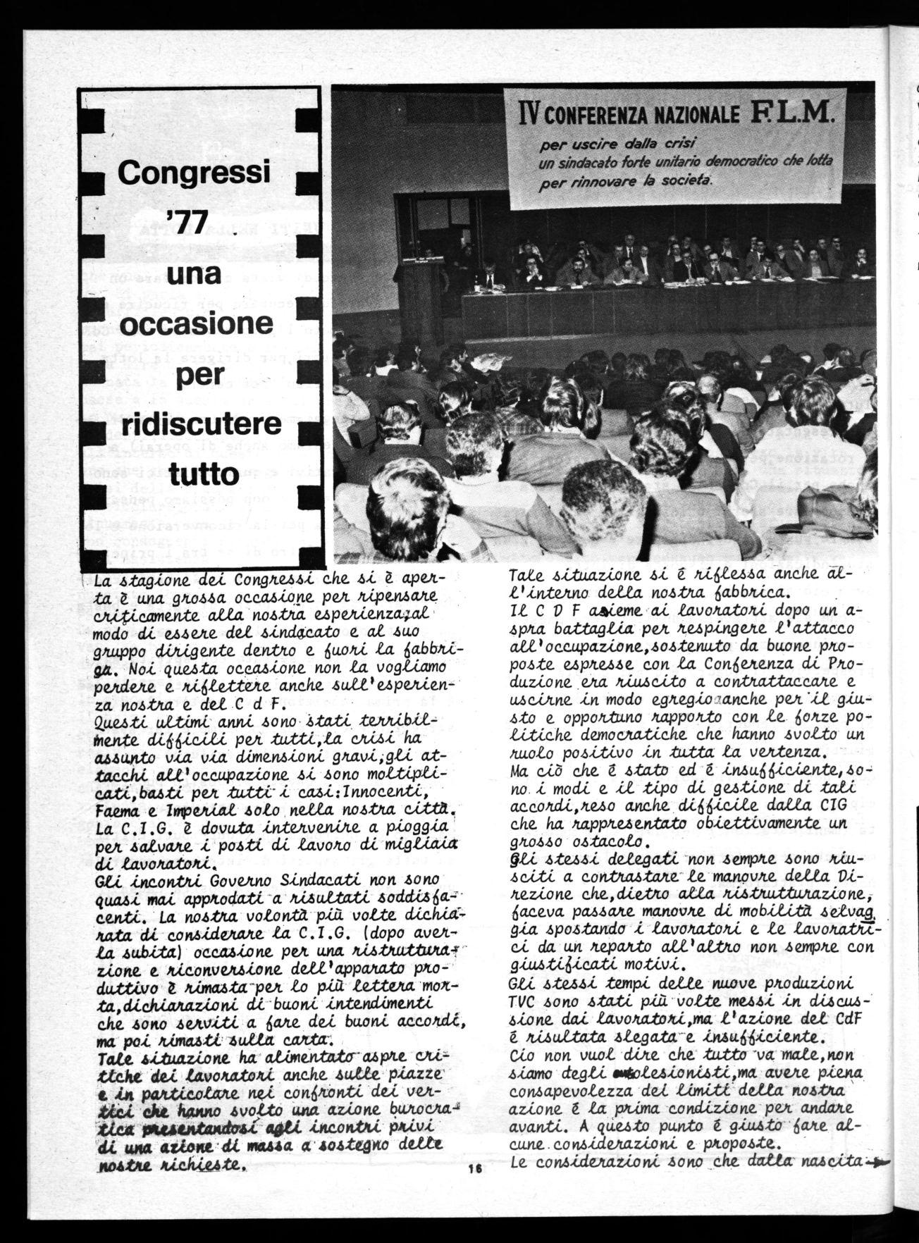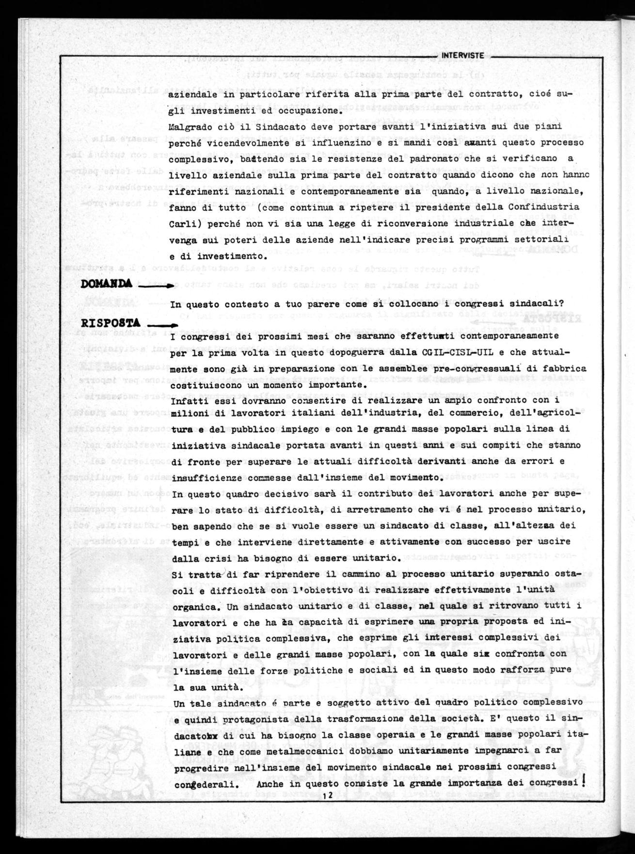 Un tale sindaratn é parte e soggetto attivo del Quadro politico complessivo e quindi protagonista della trasformazione della società. E' questo il sindacatoti di cui ha bisogno la classe operaia e le grandi masse popolari italiane e che come metalmeccanici dobbiamo unitariamente impegnarci a far progredire nell'insieme del movimento sindacale nei prossimi congressi congederali. Anche in questo consiste la grande importanza dei congressi! 1Z