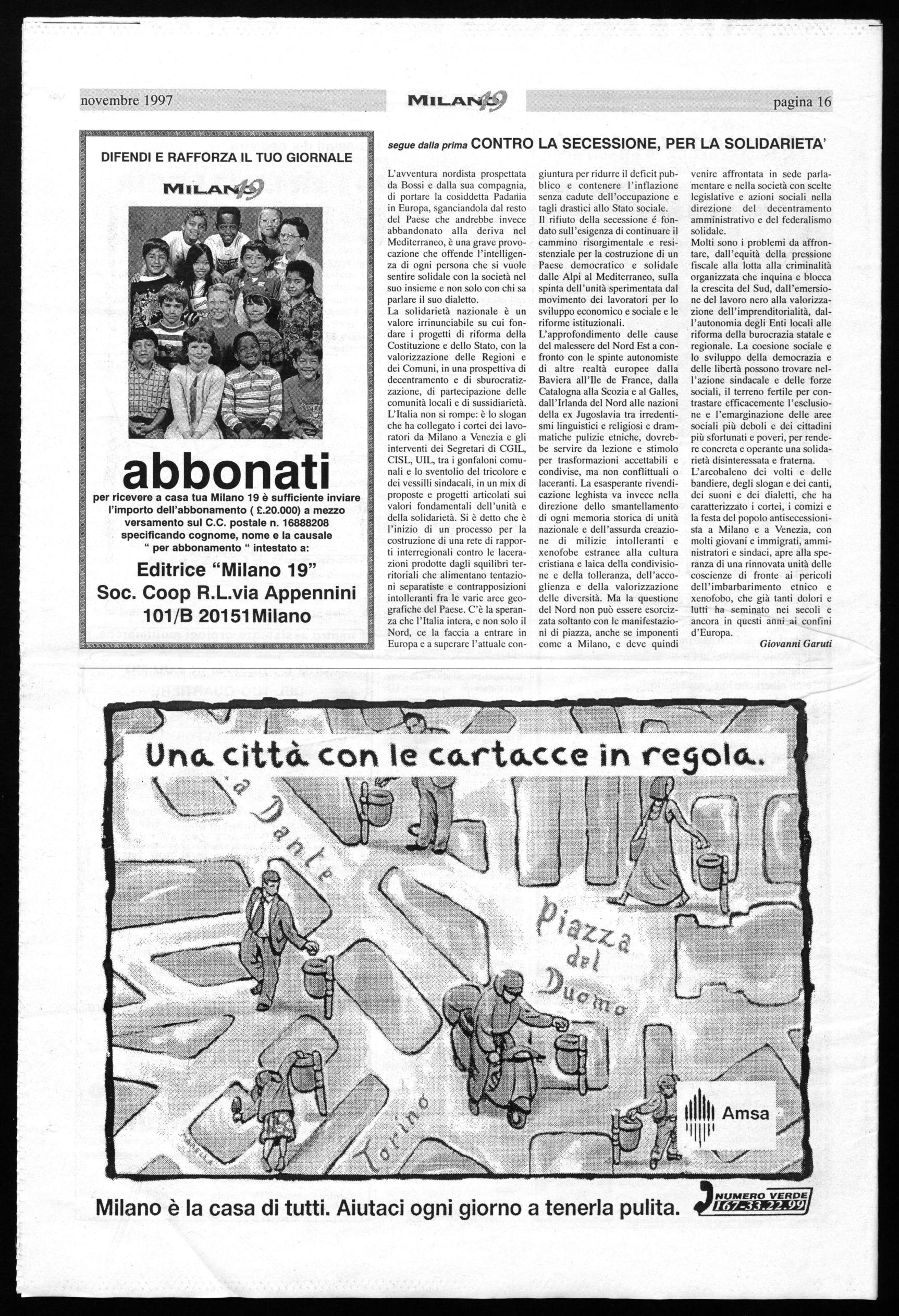 per ricevere a casa tua Milano 19 è sufficiente inviare l'importo dell'abbonamento ( £.20.000) a mezzo versamento sul C.C. postale n. 16888208 specificando cognome, nome e la causale " per abbonamento " intestato a: