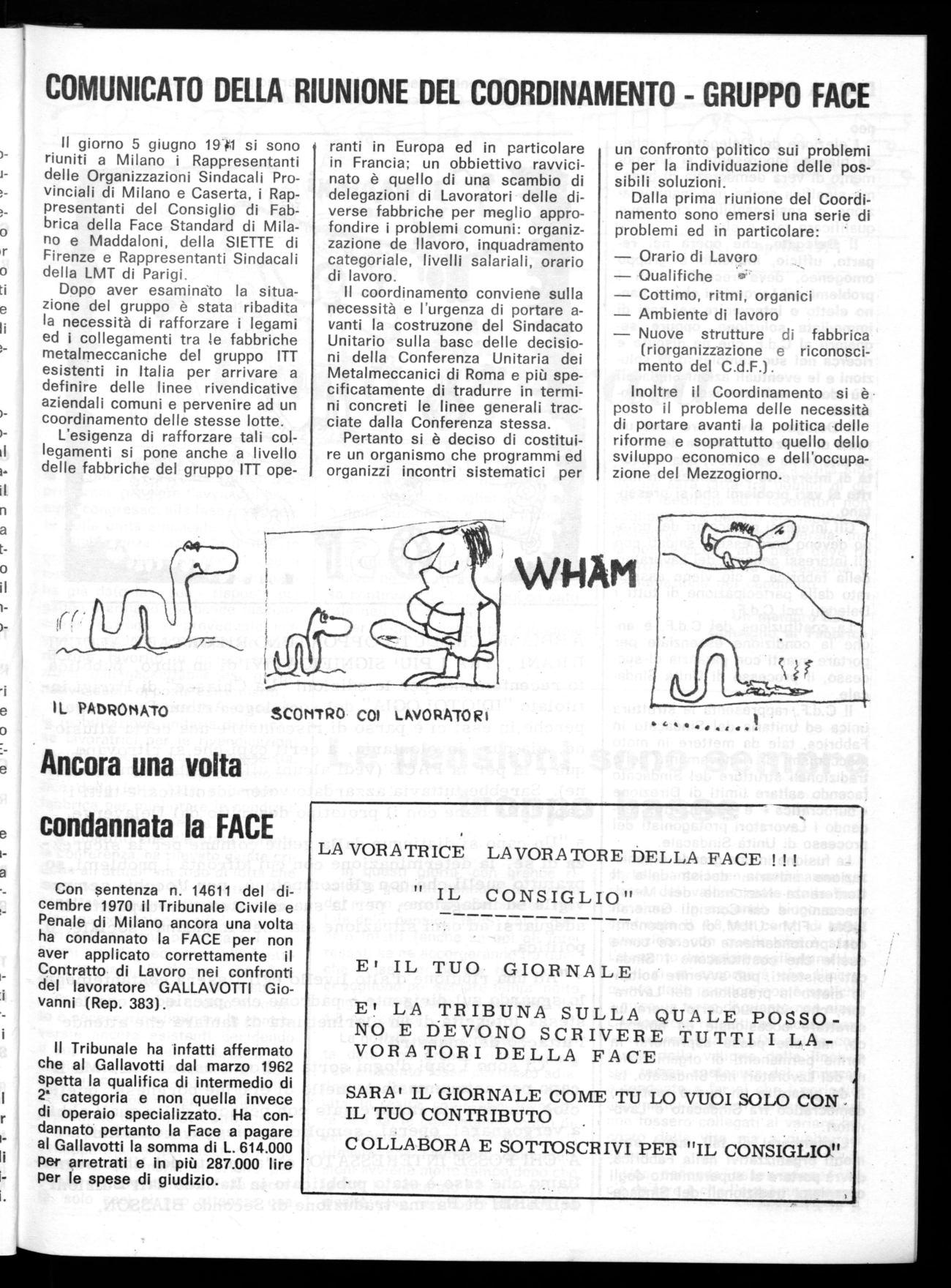 Bollettino unitario del Consiglio di Fabbrica FA CE -STANDARD settembre 1971