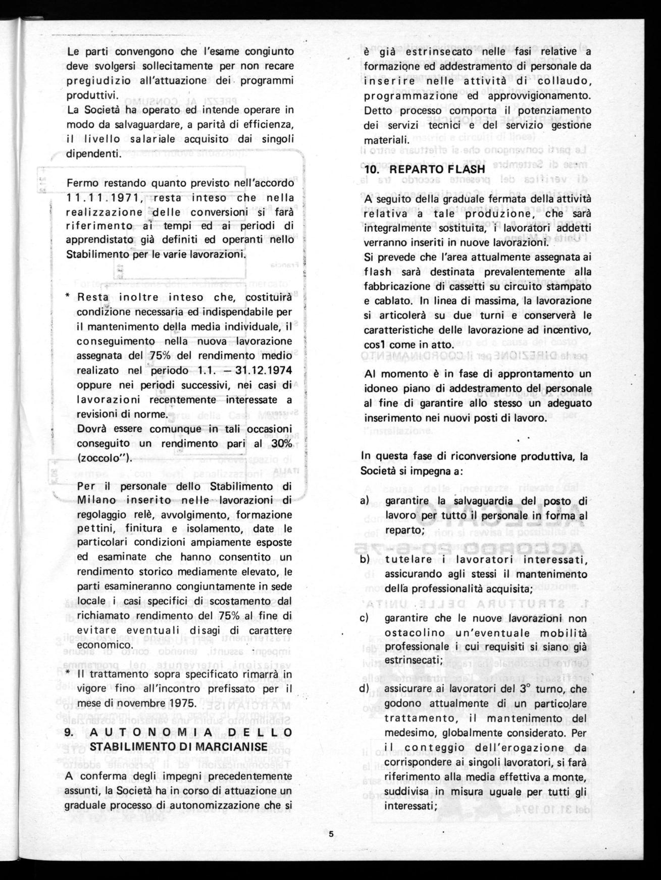 In riferimento alle intese di cui all'accordo 31.10.1974, si stabilisce per gli stabilimenti di Milano e Marcianise, un incontro entro Novembre 1975.