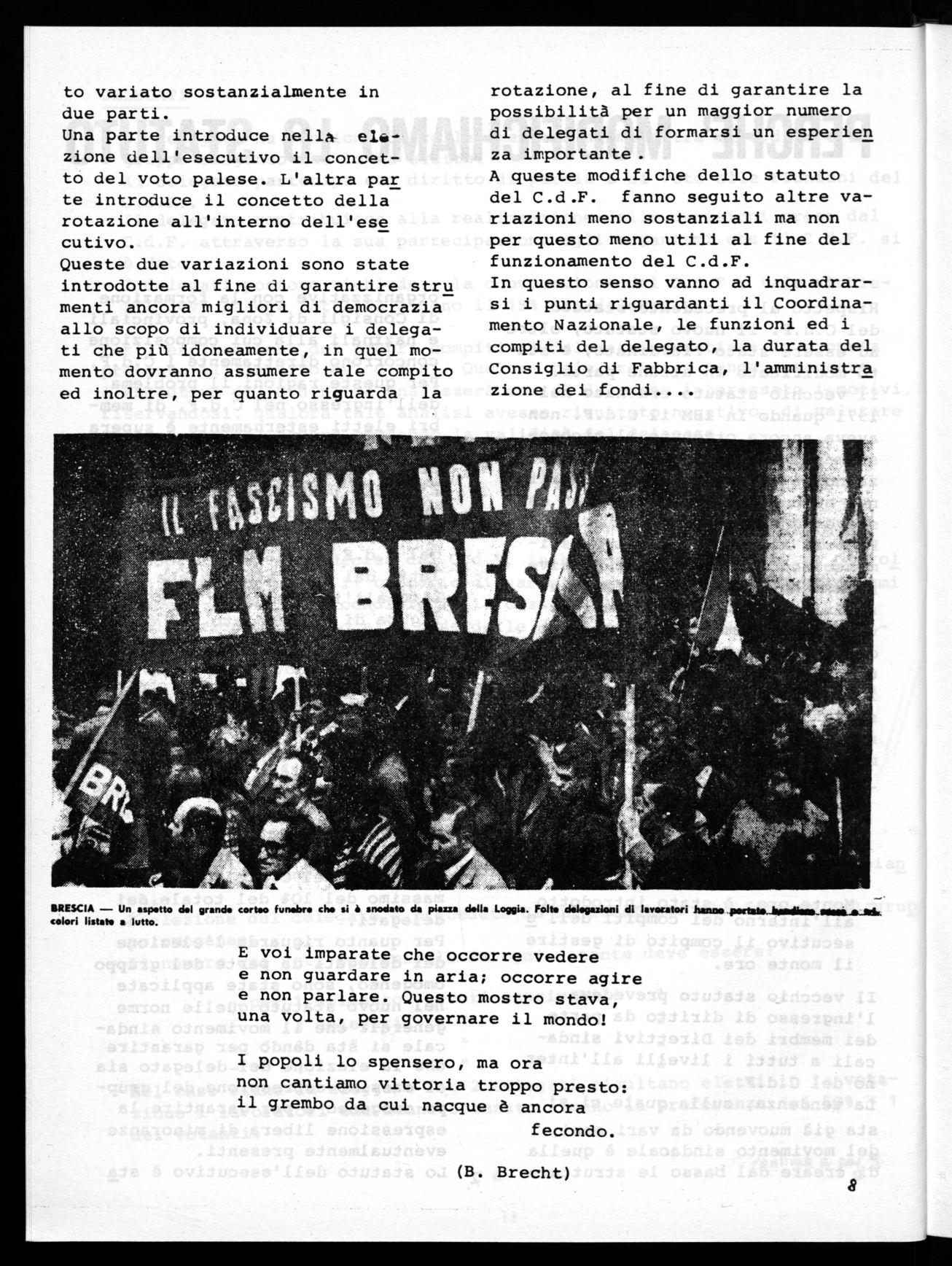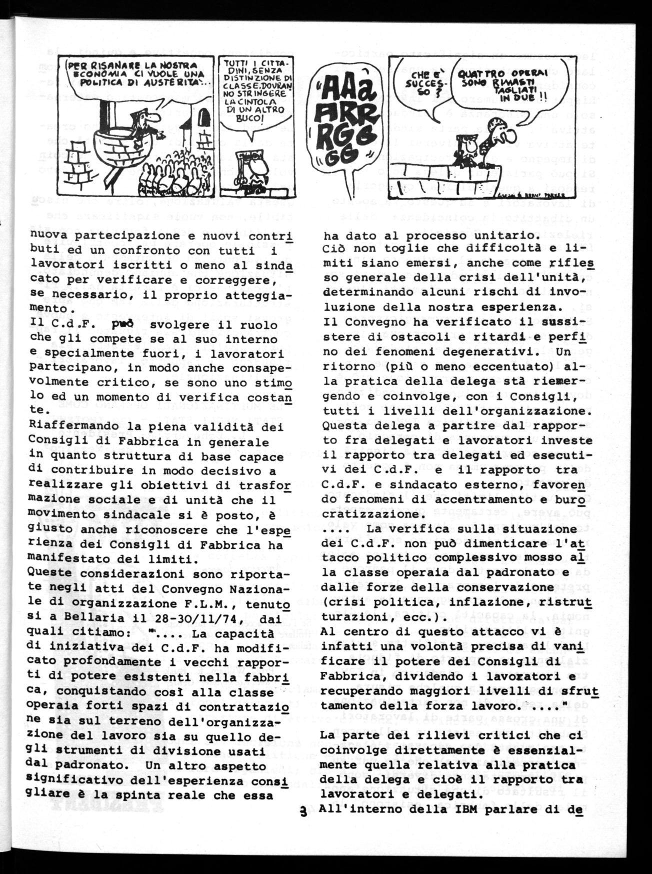 Al centro di questo attacco vi è infatti una volontà precisa di vani ficare il potere dei Consigli di Fabbrica, dividendo i lavoratori e recuperando maggiori livelli di sfrut tamento della forza lavoro. ...."