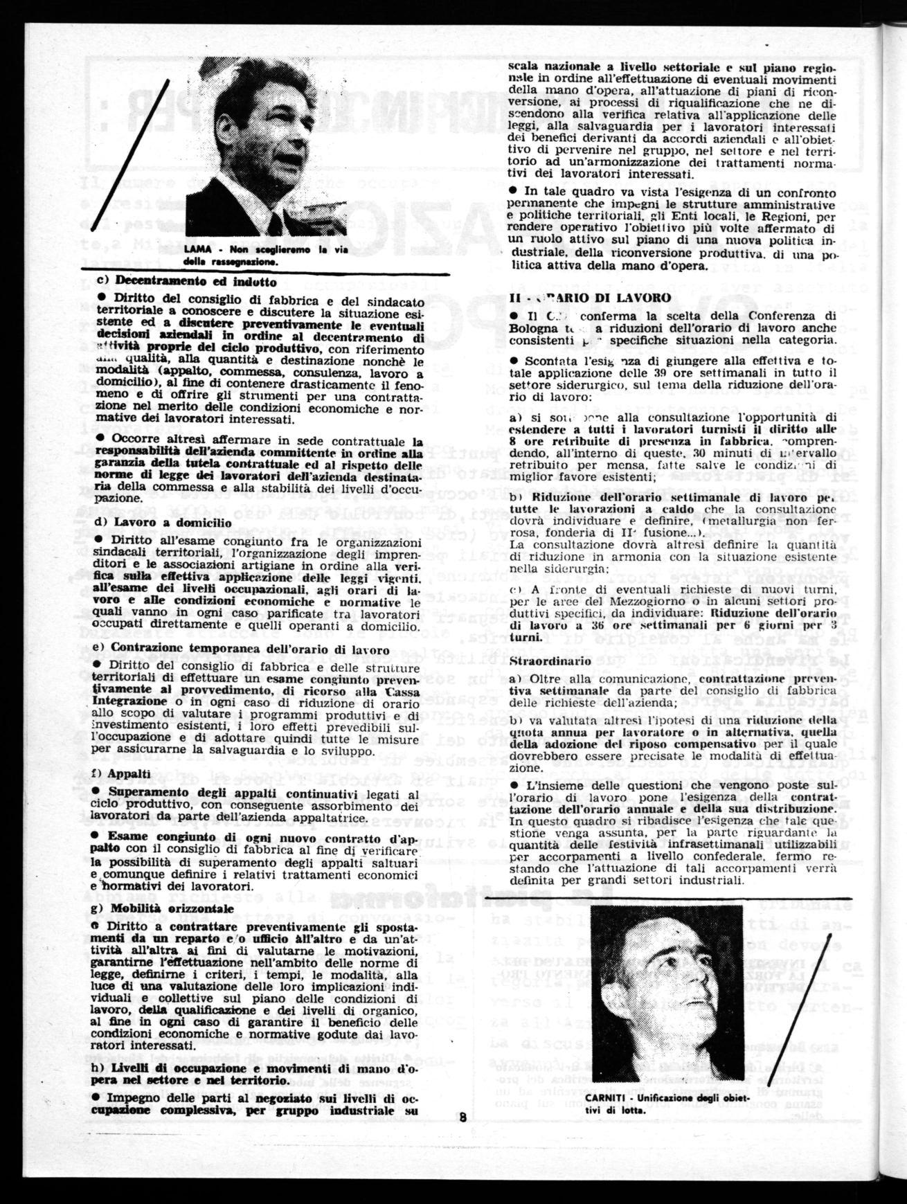 Questi dunque sono i termini sui quali si articola l'ipotesi di piattafor ma. Ma è un'ipotesi che deve essere sorretta dal contemporaneo rilancio della battaglia più generale per la riconversione produttiva,per imporre una profonda svolta economica e lo sviluppo dell'occupazione.