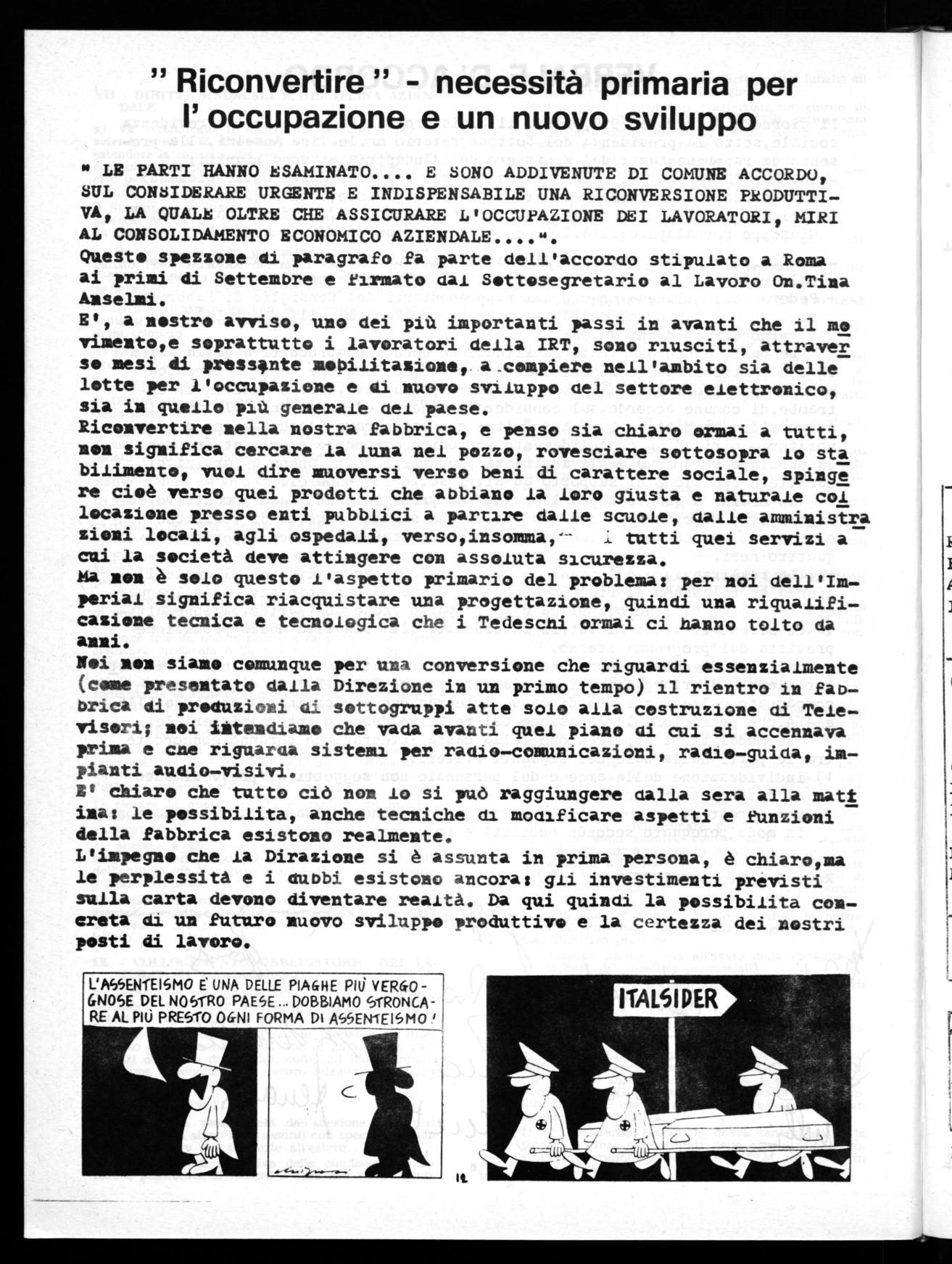3)collegarsi all'insieme del movimen to per far vincere la lotta della occupazione e dello sviluppo dello intero paese;(CONDIZIONE INDISPENSABILE PER FAR SI CHE I PROGRAMMI DI SVILUPPO ALL'IRT VADANO AVANTI E CHE QUINDI LA SICURELLA DEL POSTO DI LAVORO NON RIMANGA SCRITTA SULLA CARTA,MA DIVENTI UN FATTO REALE)