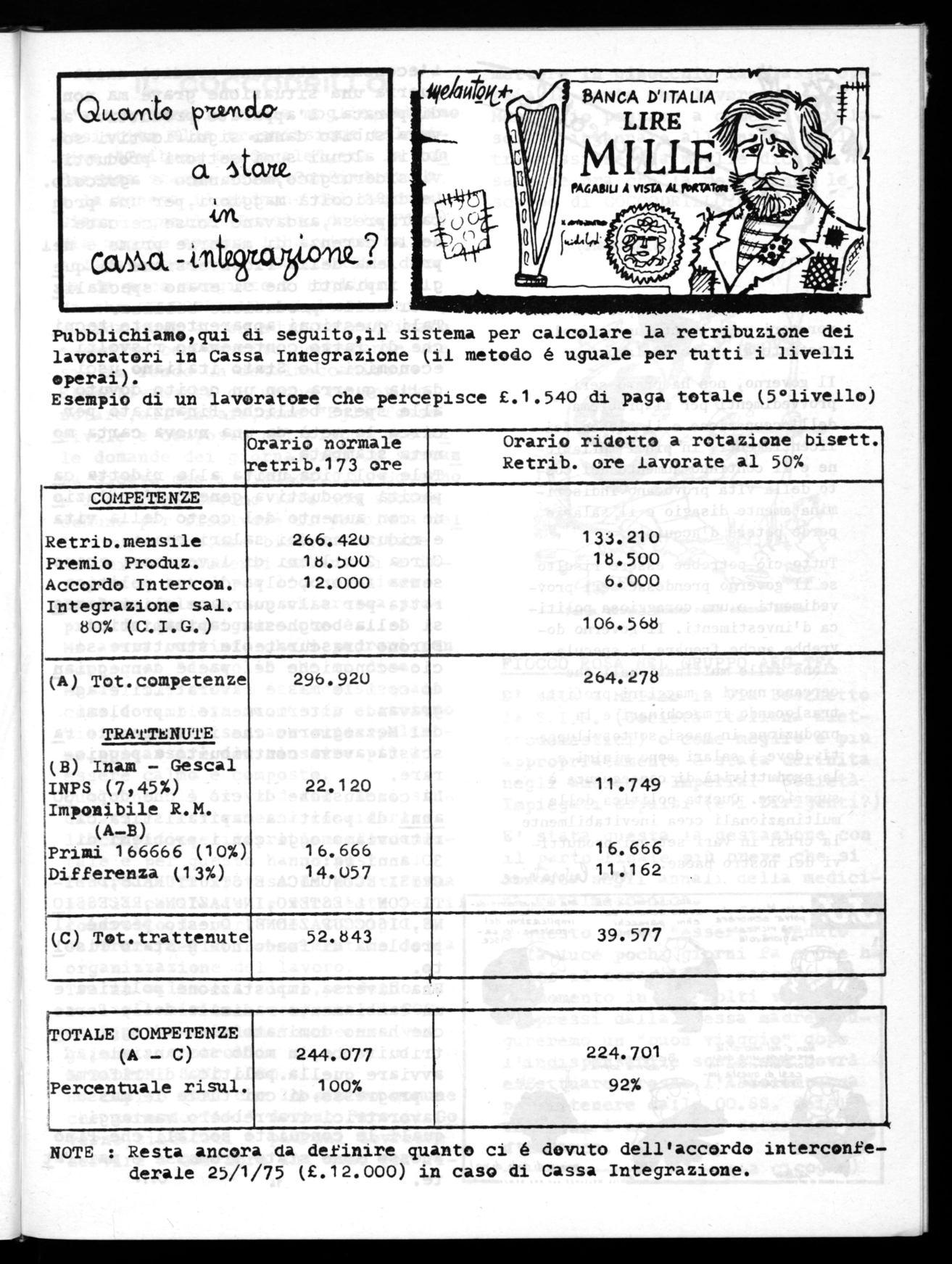 NOTE : Resta ancora da definire quanto ci é dovuto dell'accordo interconfederale 25/1/75 (£.12.000) in caso di Cassa Integrazione.