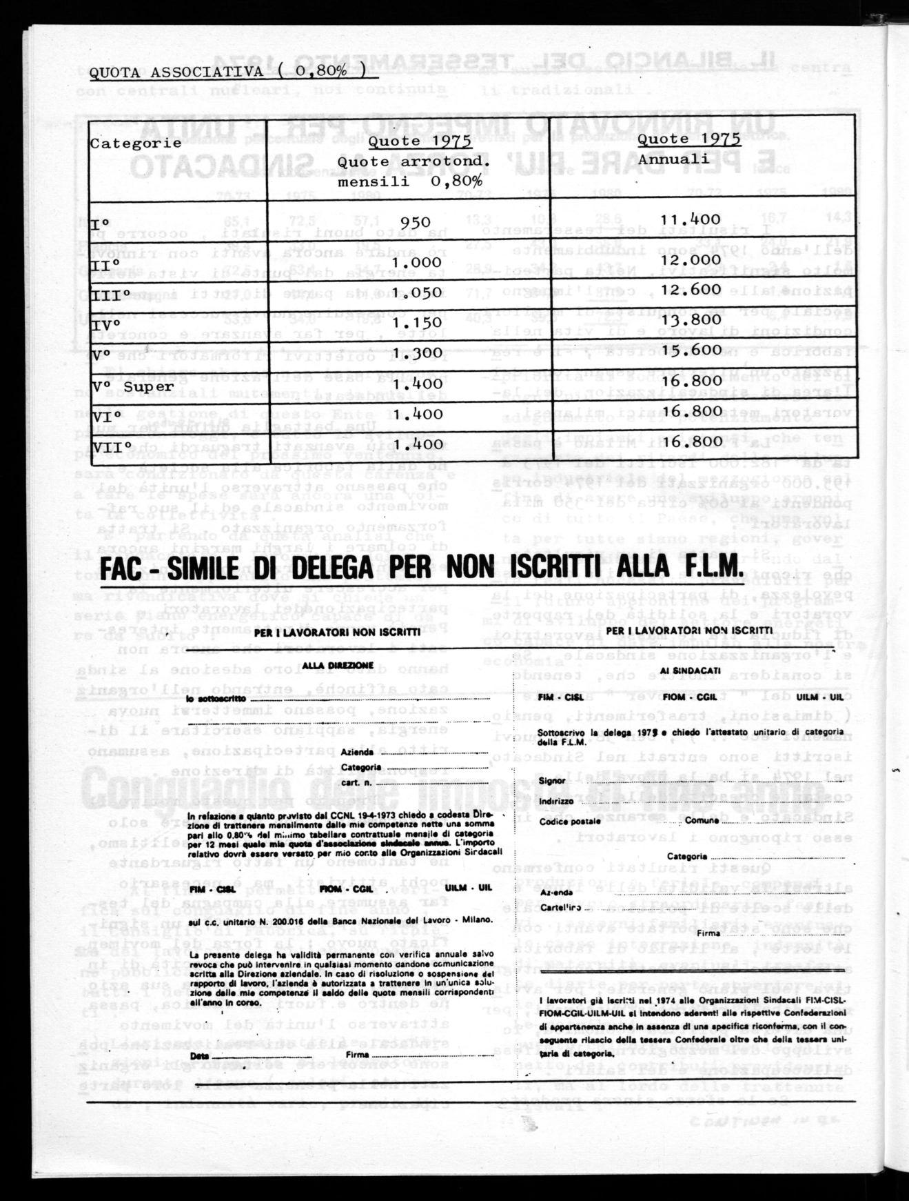Proprio per questo motivo il tesseramento non può essere solo inteso come azione di proselitismo, nè tantomeno un fatto riguardante pochi attivisti, ma è necessario far assumere alla campagna del tesseramento per l'anno 1975 un significato nuovo : la forza del movimen to sindacale, la sua capacità di in cidenza, l'efficacia della sua azio ne dentro e fuori la fabbica, passa attraverso l'unità del movimento sindacale alla cui realizzazione pos sono concorrere soltanto gli organiz zati nella pienezza della loro parte cipazione .